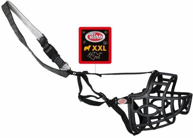 Zestaw kaganiec 44,5cm + obroża 37-68cm marki Pet Nova Plastikowy kaganiec marki Pet Nova wykonano z bardzo wytrzymałego tworzywa zachowując jednocześnie wysoką elastyczność produktu. Dzięki temu kaganiec gwarantuje maksymalne bezpieczeństwo oraz komfort użytkowania, gdyż pies może swobodnie pić i dyszeć. Intuicyjny system regulacji oraz zapinania kagańca ułatwi jego codzienne zakładanie i zdejmowanie. Obroża natomiast jest wyjątkowo trwała i delikatna zarazem dla szyi psa. Najważniejsze zalety kaganiec: plastikowy i elastyczny - lekki, wygodny, wytrzymały zamknięty - kształt koszyka w pełni regulowany pasek nylonowy zapinany na zatrzask kolor - czarny rozmiar - XXL obwód pyska psa 44,5 cm długość pyska psa 18 cm regulowany obwód paska na szyję psa 62-87 cm obroża wykonana z trwałej taśmy nylonowej regulowana w granicy 37-68 cm szerokość taśmy 2,5 cm zapinana na plastikowy klips kolor: czarno-szary Jak dobrać kaganiec? W załączonej tabeli wyszczególniono dokładne rozmiary poszczególnych modeli. Ważne by dobrać kaganiec tak, aby pies miał około 1 cm luzu pomiędzy nosem, a końcem kagańca Pamiętaj! Kaganiec przeznaczony jest na krótkie spacery, wizyty u weterynarza, przejazdy komunikacją miejską. Bądź odpowiedzialnym właścicielem psa: nie pozostawiaj psa bez opieki podczas noszenia kagańca kaganiec nie powinien być noszony przez dłuższy okres czasu nigdy nie używaj kagańca aby ukarać psa pomóż psu przyzwyczaić się do kagańca - oswajaj go stopniowo oraz nagradzaj przez dawanie smakołyków na każdym etapie zakładania kagańca - zapewni to pozytywne wsparcie i skojarzenia Jak dobrać obrożę: do obwodu szyi należy dodać 1-2 cm lub ubierając obrożę psu sprawdzić jej rozmiar tzw. metodą dwóch palców: między obrożę i szyję wkładamy dwa palce, które powinny wejść luźno i równocześnie przylegać do obroży. Szersze obroże (powyżej 2 cm) przeznaczone są dla starszych i większych psów. Mniejszym wybieramy węższe obroże (do 2 cm). Należy pamiętać, że wszystkie obroże wykonane z materiału, z czasem mogą nieznacznie się rozciągnąć. Dlatego, jeżeli Twój pies jest na granicy rozmiarów, wybierz mu obrożę o mniejszym rozmiarze.