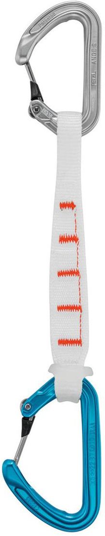 Lekki ANGE FINESSE przeznaczony jest do wspinaczki alpejskiej i sytuacji, w których liczy się każdy gram. Jest ultralekki, kompaktowy i trwały. Dzięki technologii Petzl MonoFil Keylock i przekrojowi w kształcie litery H, karabinki ANGE są bardzo lekkie i oferują optymalny stosunek wytrzymałości do masy. Mocna i ergonomiczna pętla ekspresowa FINESSE zapewnia dobry chwyt. Ochraniacz paska STRING utrzymuje karabińczyk we właściwej pozycji, ułatwiając zapinanie. Dostępny w dwóch długościach i dwóch rozmiarach karabińczyka. Ultralekki i trwały ekspres Ultralekkie karabinki ANGE z zamkiem Lekka i kompaktowa pętla ekspresowa FINESSE ma ergonomiczny kształt, który ułatwia chwyt Rozmiar i stosunek wytrzymałości do masy karabinka zoptymalizowano dzięki specyficznemu profilowi ​​i przekrojowi w kształcie litery H MonoFil Keylock zapewnia płynniejsze otwieranie i zamykanie zatrzasku oraz znacznie dłuższą żywotność w porównaniu do tradycyjnych karabinków z zatrzaskiem drucianym Efektywne wykorzystanie:Deflektor współpracuje z kształtem karabińczyka, wspierając prawidłowe ustawienie karabinka w głównej osi wzdłużnej oraz ułatwiając zapinanie Wypustki na spodzie karabińczyka utrzymują ochraniacz STRING na miejscu, co pozwala lepiej utrzymać pętlę na miejscu Ochraniacz STRING pomaga utrzymać karabinek we właściwej pozycji i chroni pętlę przed zużyciem Dostępne w czterech wersjach, aby spełnić różne potrzeby użytkowników: Wersja ultralekka: pętla ekspresowa 10 cm z dwoma karabinkami ANGE S Wersja kompaktowa zapewniająca płynne prowadzenie liny: pętla ekspresowa o długości 17 cm z dwoma karabinkami ANGE S Wersja kompaktowa dla łatwiejszego mocowania: pętla ekspresowa 17 cm z jednym karabińczykiem ANGE S na końcu na nit i jednym karabińczykiem ANGE L na końcu liny Wersja ergonomiczna ułatwiająca zapinanie: pętla ekspresowa 17 cm z dwoma karabinkami ANGE L