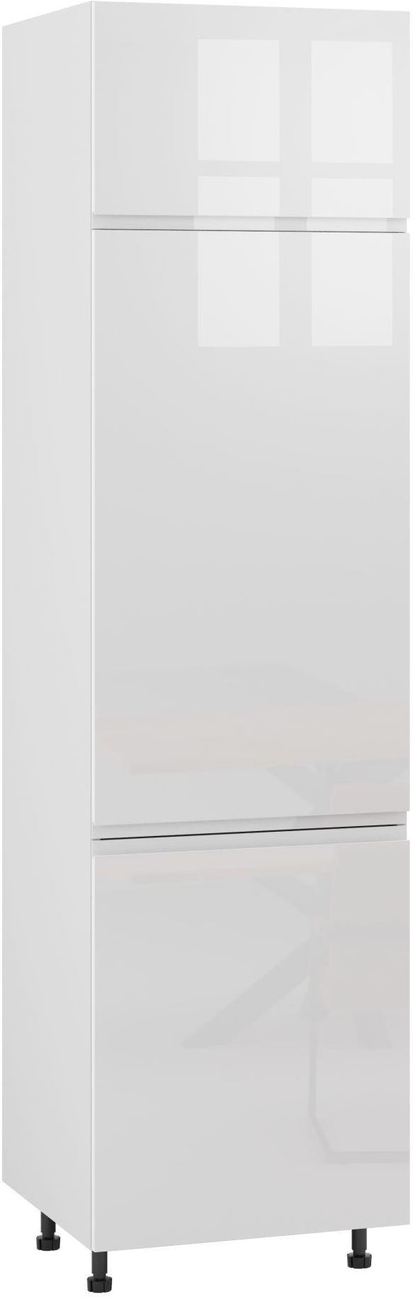RIMINI SŁUPEK WYSOKI PRAWY D-60-220 BIAŁY POŁYSK to wysokiej jakości produkt, który dodatkowo będzie świetnie się prezentował w Twojej kuchni. Ma trzy pojedyncze drzwiczki wyposażone w frezowane uchwyty i cichy domyk. Szerokość mebla to 60 cm, wysokość to 230 cm, a głębokość to 53 cm. Białe fronty z połsykiem zostały wykonane z MDFu lakierowanego, a korpus w białym kolorze z płyty laminowanej. RIMINI SŁUPEK WYSOKI jest odporny na zadrapania, ścieranie, uderzenia, wilgoć, parę, wysoką temperaturę i tłuste opary. Jest łatwy w czyszczeniu – wszelkie zabrudzenia można usunąć za pomocą ogólnodostępnych detergentów lub zwilżonej ściereczki. RIMINI SŁUPEK WYSOKI PRAWY D-60-220 BIAŁY POŁYSK jest przystosowany do samodzielnego montażu.