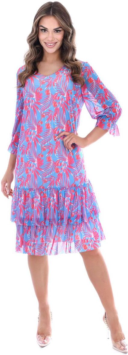Sukienka FSU1079 EKRI koralowe lioście palmy niebieska siatka Tomaszów Mazowiecki