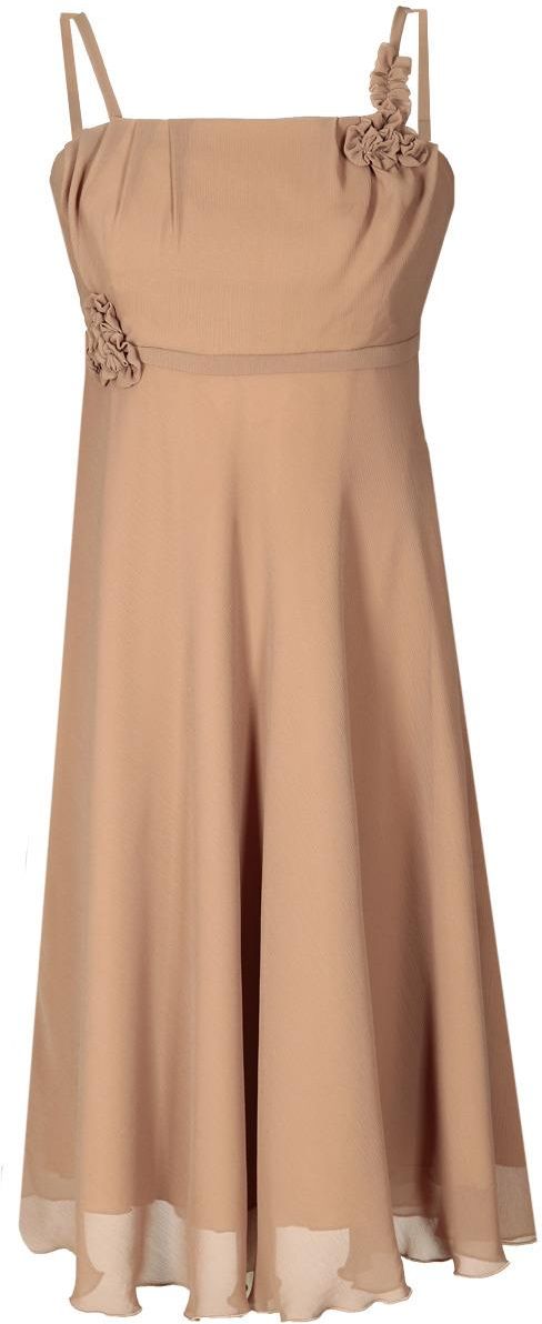 Fason: empire, rozkloszowana Dekolt przód: karo Plecy: odkryte częściowo, karczek Zapięcie: suwak kryty z boku Materiał: tkanina zwiewna - szyfon, podszewka Długość całkowita: midi Rękaw: wąskie regulowane ramiączka Ozdoby: kwiat