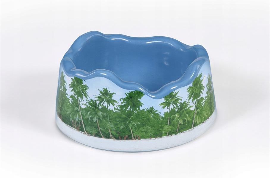 Ceramiczna miska dla psa, maldives. ​Miska dla psa wykonana z wysokiej jakości ceramiki, na zewnątrz zdobiona na wzór w odcieniach błękitu, surowej, malowanej ściany, przypominającej malediwy. Wewnątrz miski umieszczono motyw kaktusa. Miska może być użytkowana zarówno przez psa, jak i kota, do picia lub jedzenia. Może również posłużyć jako designerskie naczynie kuchenne. Wykonana została z grubej, trwałej ceramiki. Nadaje się do mycia w zmywarce. Miska marki Miapet może być również użytkowana w kuchni, jako miska na krem, zupę czy też na owoce. Cechy: może być użytkowana także w kuchni nadaje się do mycia w zmywarce wymiary: 17 cm x 7,5 cm motyw malediwów