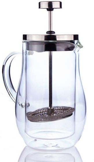 Zaparzacz do kawy i herbaty tłokowy (french press) z podwójnymi ściankami, szklany. Zaparzacz do kawy i herbaty tłokowy typu French Press pozwala cieszyć się smakiem aromatycznej kawy bez fusów. Jest przeznaczony dla miłośników wysokiej jakości kawy i pięknego wzornictwa. Nowoczesny kształt i design wyróżnia go na tle pozostałych zaparzaczy na rynku. Naczynie posiada prosty i funkcjonalny mechanizm – filtr tłokowy ze stalowym sitkiem, który umożliwia przygotowanie kawy (lub herbaty) o intensywnym smaku i aromacie już w kilka minut. Kiedy uznamy, że napar jest wystarczająco mocny, należy wcisnąć tłok, a proces zaparzania zostaje przerwany. Nie ma konieczności wyciągania fusów, liści lub filtra. Praska francuska to świetny pomysł na prezent, sprawdzi się też idealnie w Twojej kuchni. French Press jest wykonany z żaroodpornego szkła o pojemności 400 ml z podwójną ścianką, która świetnie izoluje i utrzymuje stałą temperaturę przez cały czas parzenia. Wieczko z sitkiem jest wykonane z wytrzymałego plastiku i stali nierdzewnej. French Press w skrócie: Z podwójną ścianką, utrzymuje stabilną temperaturę podczas parzenia kawy Wykonany z żaroododpornego szkła borokrzemowego Plastikowe wieczko z nierdzewnym "sitkiem" praktyczny i stylowy