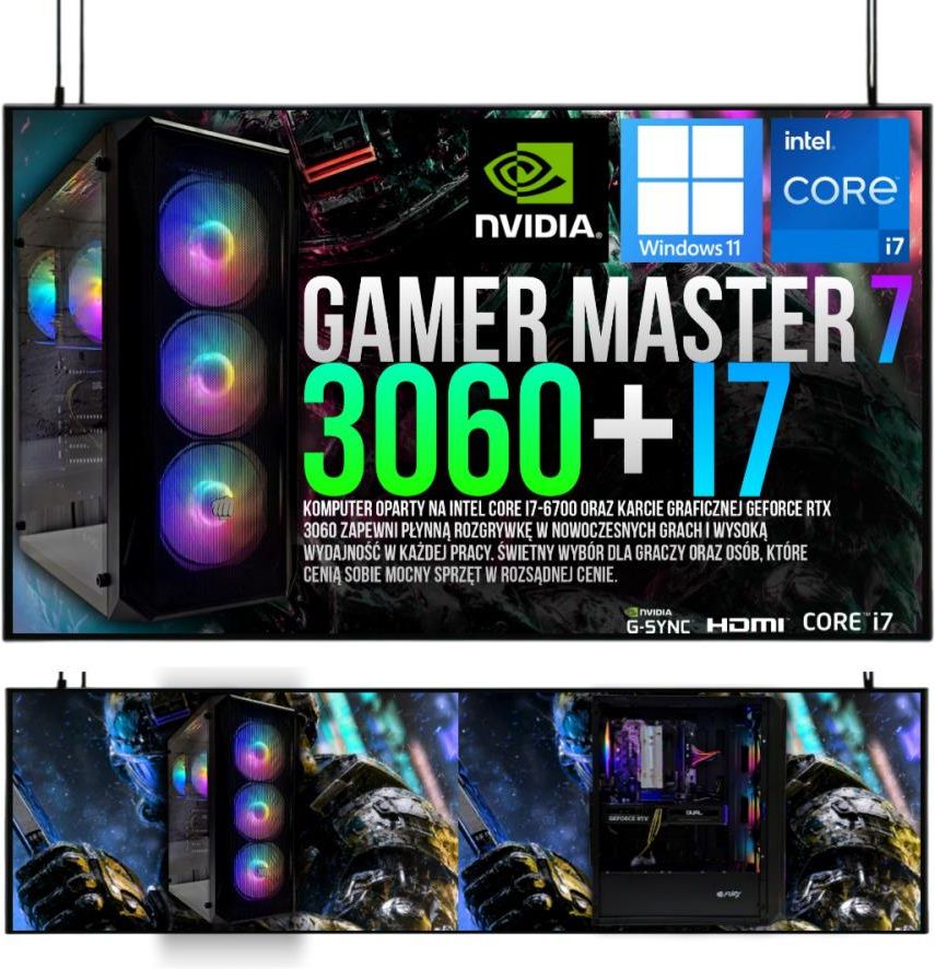 PC GAMINGOWY I7 6700 32GB DDR4 RTX 3060 12GB 1TB SSD Szybki, wydajny i niezawodny komputer dla wymagających-NAJNOWSZA DOSTAWA ! Jednostka centralna dysponuje ogromną mocą obliczeniową. Całość w pełni skonfigurowana i gotowa do pracy i zabawy. Niezawodność nawet pod wysokim obciążeniem, szybki start systemu, błyskawicznie działanie gier i aplikacje oraz wysoka kultura pracy to główne cechy naszych komputerów. Oferowany zestaw posiada nadzwyczajny stosunek ceny do wydajności w grach oraz zaawansowanych aplikacjach. Najwyższa jakość po uczciwych cenach. Specyfikacja techniczna Model: Adronix Gamer Expert i7 32GB/1TB SSD RTX 3060 M27 Procesor: Intel Core i7 6700 4 x 3,4/4GHz (8MB cache) Karta graficzna: GeForce RTX 3060 12GB DDR6 Pamięć RAM: 32GB PAMIĘCI DDR4 Dysk SSD: SSD 2TB/ NAWET DO 20x SZYBSZY OD TRADYCYJNYCH DYSKÓW Komunikacja: Wi-Fi, LAN 10/100/1000 Mbps Zasilacz: 650W Złącza płyty głównej: PS/2 / USB 2.0 / USB 3.0 / AUDIO / LAN Złącza front panelu: 2x USB 3.0 / 2x AUDIO System operacyjny: PEŁNA WERSJA WINDOWS 11 PRO PL Wymiary: 35cm WYSOKOŚĆ x 32,5cm DŁUGOŚĆ x 18,5cm SZEROKOŚĆ Dodatkowe: Oryginalny układ chłodzenia firmy Intel Podświetlanie: 4x WENTYLATOR LED 120MM Bezpieczne pakowanie - Komputery pakowane są w dedykowane opakowania oraz solidne kartony, oznaczone zarówno naszym logiem jak i naklejkami ostrzegawczymi dla kurierów. Dzięki temu mamy pewność, że zamówiony sprzęt dotrze do naszego klienta na czas i w pełni sprawny. Niezawodność - KAŻDY egzemplarz w ramach procesu produkcji przechodzi rygorystyczny test jakości mający na celu zapewnienie stabilnej i bezawaryjnej rozrywki. System operacyjny - Każdy komputer posiada zainstalowany aktualny system operacyjny wraz ze wszystkimi najnowszymi sterownikami i nadaje się do pracy natychmiast po włączeniu. Procesor Intel® Core™ szóstej generacji SKYLAKE Tworzysz własny system przeznaczony do gier? Chcesz jednocześnie grać i udostępniać strumieniowo obraz ze swojego urządzenia? Jeśli pragniesz otrzymać najwyższą wydajność, procesor Intel® Core™ szóstej generacji jest tym, czego potrzebujesz. Z jego pomocą wyposażysz swój nowy system w cztery rdzenie o szybkości taktowania do 4 GHz oraz 8 MB pamięci cache. Otrzymasz również wsparcie dla 64 GB pamięci RAM DDR4 oraz dwóch kart graficznych dzięki obsłudze interfejsu PCIe* trzeciej generacji przez układ Intel® Z170. Przejmij kontrolę nad grą. Zawładnij swoimi przeciwnikami. Ustalaj reguły. Obudowa Gamingowa BanditPower BPG3 1x USB 3.0, 2x USB 2.0, Okno z Hartowanego Szkła BanditPower z serii G to przestronne obudowy odpowiadająca najnowszym trendom w konstrukcji komputerów dla graczy. Zapewniają szeroki wachlarz możliwości aranżacji oraz efektowny wygląd. W modelach Bandit serii G można zamontować do 8 wentylatorów 120 mm z efektem RGB co zapewnia nie tylko optymalnie chłodzenie wnętrza obudowy ale również wspaniałe podświetlanie. Pojemna konstrukcja wyposażona została w panel bocznym ze szkła hartowanego oraz opcjonalnie w zależności od wybranego modelu z panelem przednim również ze szkła hartowanego. Obudowy BanditPower bezproblemowo pomieszczą formaty płyt typu Micro ATX, Mini-ITX i ATX oraz są kompatybilne z GPU o długości 270 mm. Ogromna przestrzeń na dane to również ważny element obudowy Bandit, które pomieszczą 2 dyski 3,5" oraz 2 dyski 2,5" SSD lub HDD. Obudowy wyposażone zostały w komplet filtrów przeciw-kurzowych oraz panele I/O z portami USB 3.0 i USB 2.0 jak również gniazdami audio Palit GeForce RTX 3060 Dual 12GB Ciesz się płynnością i wyjątkową jakością grafiki w najnowszych grach, z opartą o architekturę NVIDIA Ampere kartą graficzną Palit GeForce RTX 3060 Dual. Wsparcie dla nowatorskich technologii, takich jak Ray Tracing czy DLSS oraz 12GB szybkiej pamięci GDDR6 pozwala doświadczyć fotorealistycznych efektów podczas rozgrywki w wysokiej rozdzielczości. Układ chłodzenia z dwoma wentylatorami dba o optymalne temperatury, a podświetlane logo RGB umożliwi personalizację Twojej karty graficznej. s Model: RTX 3060 Dual Złącze karty graf.: PCI-E 16x ver. 4.0 Producent chipsetu: nVidia Chipset: GeForce RTX 3060 Rodzaj pamięci: DDR6 Szyna pamięci: 192-bitowa Wielkość pamięci VRAM: 12 GB Taktowanie rdzenia: 1320 MHz Taktowanie rdzenia (Boost): 1837 MHz Taktowanie pamięci: 15 Gbps Rdzenie CUDA: 3584 Porty wideo: 1 x HDMI3 x DisplayPort Chłodzenie: Aktywne Obsługiwane standardy: DirectX 12 UltimateOpenGL 4.6 Wymiary: 245 x 119 x 40 mm Wersja: Box DYSK SSD 2TB Dzięki dyskowi SSD przyśpieszysz znacznie działanie swojego komputera. SSD w porównaniu do dysku typu HDD jest nawet 10 krotnie szybszy. Jest to podzespół, który zdecydowanie należy mieć w swoim komputerze, stanowi on idealną bazę pod system operacyjny oraz programy, zapewniając użytkownikowi znacznie szybszą pracę komputera. Natomiast dysk SSD 2TB idealnie sprawdzi się jako magazyn danych oraz miejsce na gry, które wymagają dużej ilości miejsca na dysku! Łączna powierzchnia 2TB wystarczy nawet dla najbardziej wymagających użytkowników ! 32GB Pamięci RAM DDR4 2400 Mhz najwyższej jakości Pamięć RAM jest jednym z najważniejszych podzespołów każdego komputera i liczy się nie tylko jej ilość, ale też jakość. W komputerze znajduje się 32GB pamięci, co spokojnie wystarcza na przeglądanie internetu, dekodowanie wideo, czy granie w wymagające gry. DDR4 pozwala Ci cieszyć się szybszą pracą komputera podczas pracy, grania, edytowania materiałów wideo i zdjęć, renderowania czy przetwarzania danych. Każda kość pamięci została poddana rygorystycznemu procesowi walidacji na wszystkich najpopularniejszych płytach głównych po to, żeby uzyskać najlepszą w swojej klasie niezawodność i kompatybilność z wszystkimi płytami głównymi. Moduły zaprojektowane zostały z niskimi napięciami w standardzie DDR4, co obni