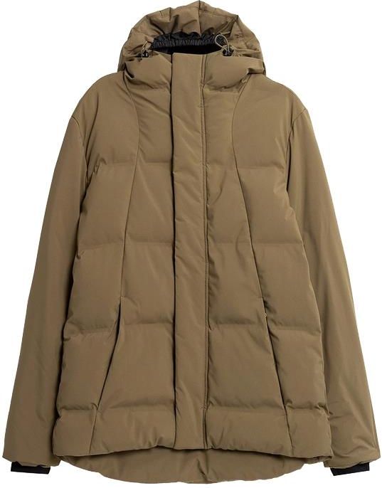Kurtka zimowa męska 4F pozwoli zapomnieć Ci o przeszywającym chłodzie i energicznie kroczyć przed siebie, gdy pogoda nie rozpieszcza. Brązowy odcień zespolony z subtelnym logo brandu z tyłu na ramieniu jest kwintesencją funkcjonalności i modnego, sportowego stylu. Kurtka zyskała wypełnienie w postaci syntetycznego puchu, który w połączeniu z technologią 4F Warm wykazuje optymalne właściwości termoizolacyjne, co docenisz jesienią lub zimą. Ponadto puch syntetyczny jest antyalergiczny, odporny na pleśń oraz o wiele prostszy w konserwacji w porównaniu do swojego naturalnego odpowiednika. Szeroko pikowana konstrukcja nie tylko podkreśla nowoczesny, sportowy charakter kurtki, ale zapobiega również przemieszczaniu się wypełnienia i odkształcaniu się fasonu. Odpowiednia impregnacja materiału usprawnia właściwości hydrofobowe kurtki, czyniąc ją bardziej odporną na wilgoć z zewnątrz. Wysoka stójka osłania wrażliwą szyję przed mroźnymi podmuchami wiatru. Dwukierunkowy zamek główny z wewnętrzną i zewnętrzną listwą przeciwwiatrową, dół regulowany za pomocą elastycznych ściągaczy ze stoperem oraz wewnętrzne, dzianinowe mankiety ograniczają utratę ciepła. Dwie, zapinane kieszenie boczne oraz jedna, wewnętrzna kieszonka pomogą rozlokować podręczne drobiazgi. Kurtka męska 4F zapewni optymalną ochronę przed umiarkowanymi opadami deszczu lub śniegu, dlatego okres zimowy będzie zdecydowanie przyjemniejszy. Dane techniczne:· materiał główny: 100% poliester· podszewka: 100% poliester· wypełnienie: 100% poliester· 2 kieszenie boczne zapinane na zamek + 1 wewnętrzna kieszonka zapinana na zamek kurtka męska firmy 4F 2 boczne kieszenie na zamek wewnętrzna kieszeń na zamek dwukierunkowy zamek główny zabezpieczony wewnętrzną i zewnętrzną plisą przeciwwiatrową zintegrowany kaptur z pełną regulacją objętości i głębokości wypełnienie z puchu syntetycznego dół z możliwością dopasowania na elastyczne ściągacze ze stoperami wewnętrzne dzianinowe mankiety wysoki kołnierz szeroko pikowany materiał z hydrofobowym wykończeniem Rozmiary Rozmiar S Długość całkowita: 70-75 cm Szerokość w klatce: 2 x 52 cm Długość od pachy: 45 cm Długość rękawa od szyi: 75 cm Rozmiar M Długość całkowita: 76-78 cm Szerokość w klatce: 2 x 55 cm Długość od pachy: 46 cm Długość rękawa od szyi: 78 cm Rozmiar L Długość całkowita: 76-81 cm Szerokość w klatce: 2 x 58 cm Długość od pachy: 46 cm Długość rękawa od szyi: 80 cm Rozmiar XL Długość całkowita: 77-83 cm Szerokość w klatce: 2 x 61 cm Długość od pachy: 48 cm Długość rękawa od szyi: 82 cm Rozmiar XXL Długość całkowita: 78-84 cm Szerokość w klatce: 2 x 64 cm Długość od pachy: 49 cm Długość rękawa od szyi: 84 cm *margines błędu wynosi +/- 2 cm **produkt mierzony na płasko