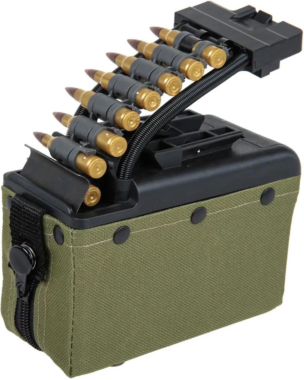 Elektryczny magazynek pudełkowy o pojemności 2000 kulek przeznaczony do replik M249. Został wykonany z tworzywa sztucznego. Na obudowie magazynka znajduje się nylonowy pokrowiec z zamkiem błyskawicznym. Model został wyposażony w imitację amunicji, co zwiększa realizm podczas rozgrywek.