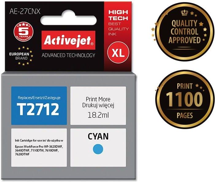 AE-27CNX Tusz do drukarki Epson zastępuje tusz Epson 27XL T2712 Kompatybilność Epson WorkForce WF-3620DWF, Epson WorkForce WF-3640DTWF, Epson WorkForce WF-7110DTW, Epson WorkForce WF-7210DTW, Epson WorkForce WF-7610DTW, Epson WorkForce WF-7620DTW, Epson WorkForce WF-7710DTW, Epson WorkForce WF-7715DTW Ciesz się wyjątkowymi barwami  Tusz Activejet AE-27CNX do Epson T2712 idealnie odwzorowuje kolory. Barwy są głębokie i pełne życia, dokładnie tak jak tego oczekujesz. To doskonały model do wydruku zdjęć. Ciesz się niezapomnianymi chwilami w najlepszej możliwej jakości.  Bezpieczny wybór  Korzystanie z zamienników Activejet nie powoduje utraty bądź też skrócenia gwarancji na twoją drukarkę. To w pełni bezpieczny i doskonale sprawdzony produkt, którego możesz używać bez żadnych ograniczeń.  Prosta instalacja  Instalacja tuszu Activejet AE-27CNX do Epson T2712  nie sprawi ci najmniejszego problemu. Cały proces zajmie najwyżej kilka minut i nie wymaga on żadnej specjalistycznej wiedzy. To proste i wygodne!  Pełna kompatybilność  Tusz Activejet AE-27CNX do Epson T2712 został stworzony z myślą dokładnie o twojej drukarce. Nie napotkasz żadnych problemów podczas codziennego użytkowania. Drukowanie będzie tak samo proste jak w przypadku oryginalnego produktu.  Kontroluj poziom tuszu Dzięki prawidłowo działającemu wskaźnikowi poziomu tuszu w pojemniku zawsze będziesz wiedział jaki jest jego aktualny stan. Nie zaskoczy cię zatem jego nagłe wyczerpanie. Miej wszystko pod idealną kontrolą! Dane techniczne Kolor: Cyjan Technologia druku: Druk atramentowy Rodzaj naboju z atramentem: Wysoka (XL) wydajność Ilość wkładów z kolorowym tuszem: 1 Pasuje do urządzeń: Epson Pojemność kolorowego tuszu: 18,2 ml Model: Zamiennik Funkcje techniczne: Cartridge with chip Rodzaj atramentu: Atrament barwnikowy Rodzaj opakowania: Pudełko Klasa: A+ Technologia: New Wersja: Supreme Rodzaj dostawy: Jednopak Certyfikaty: ISO 9001, ISO 14001, ISO 27001, ISO 28000, TÜV Rheinland (ISO/IEC 19752, ISO/IEC 19798), CE Opis blokowy: Activejet Tusz Certyfikat środowiskowy (zrównoważonego rozwoju): CE Eksploatacja kompatybilna: Epson 27XL T2712 Rodzaj tuszu kolorowego: Atrament barwnikowy EAN: 5901443106166