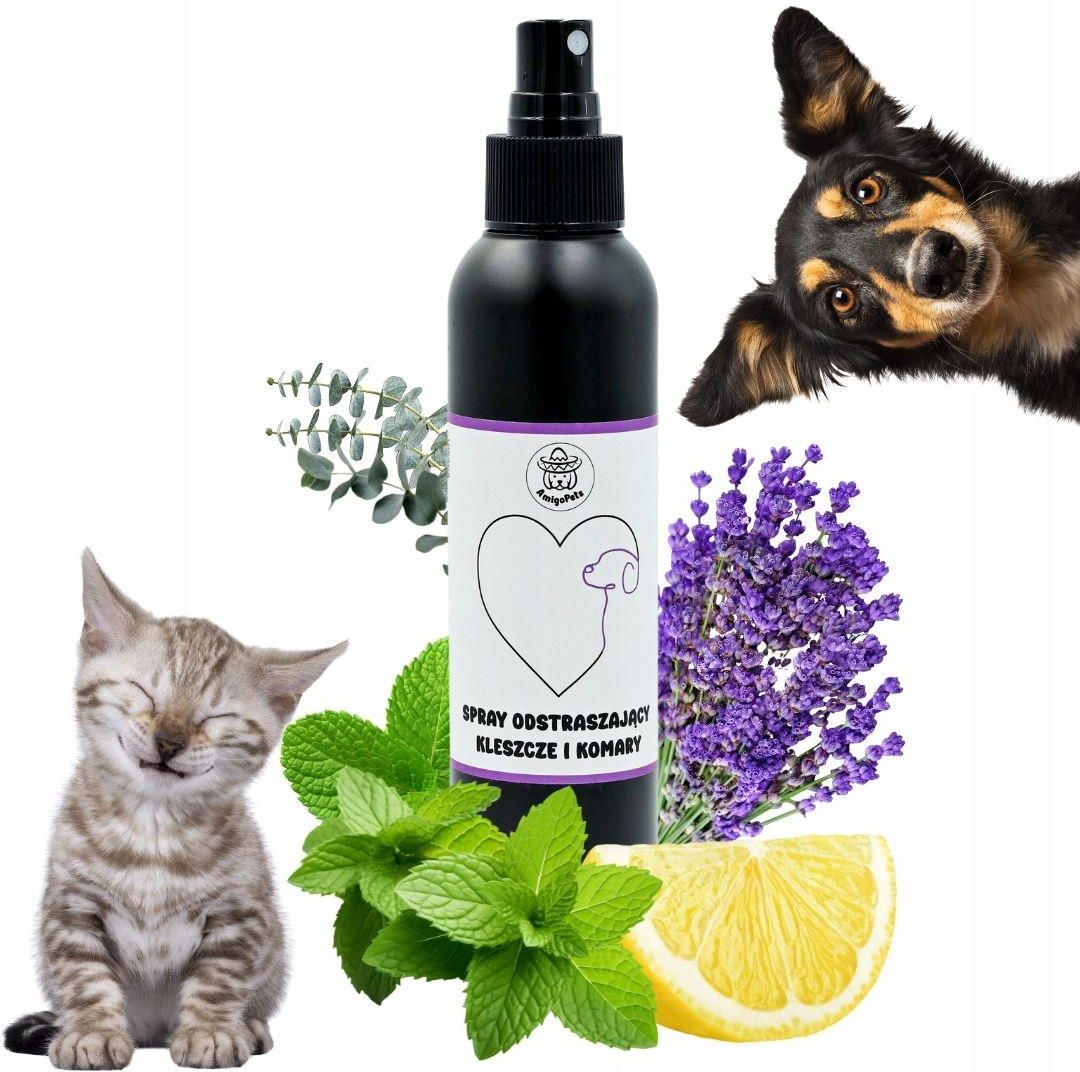 💜 Sprej odstraszający na kleszcze, pchły i komary dla psów i kotów AmigoPets – Naturalna Ochrona dla Twojego Pupila 🐾 Poznaj nowy, naturalny sprej odstraszający komary i kleszcze, który zapewnia ochronę Twojemu psu podczas spacerów na świeżym powietrzu! Dzięki specjalnie dobranym składnikom roślinnym i olejkom eterycznym, takim jak drzewo herbaciane, cytryna, mięta, eukaliptus i lawenda, tworzy zapachową barierę nieprzyjemną dla owadów, a jednocześnie pielęgnuje sierść i dodaje jej przyjemnego, świeżego aromatu. ? Najważniejsze cechy: 🌿 Naturalna ochrona przed owadami: Nasza formuła to starannie dobrana mieszanka olejków eterycznych, takich jak drzewo herbaciane, mięta, cytryna, lawenda i eukaliptus. Te składniki są znane ze swoich właściwości odstraszających owady, tworząc barierę zapachową, która skutecznie utrudnia kleszczom i komarom zbliżenie się do Twojego pupila. ✨ Przyjemny zapach i pielęgnacja: Nie tylko chroni, ale również pielęgnuje sierść Twojego psa. Olejki eteryczne zapewniają odświeżający, lekki zapach, który nie jest przytłaczający ani dla Ciebie, ani dla Twojego pupila. 💧 Bezpieczeństwo i delikatność: Masz pewność, że Twój pies jest chroniony naturalnie, bez szkodliwych substancji chemicznych. Produkt jest w pełni wegański, łagodny dla skóry i sierści, co sprawia, że jest idealny nawet dla wrażliwych psów. 💪 Długotrwała ochrona i wygoda użycia: Sprej jest niezwykle prosty w użyciu – wystarczy kilka szybkich psiknięć, aby zapewnić psu długotrwałą ochronę. Produkt można również rozpylać na obrożę, co zwiększa wygodę i skuteczność działania.. � Sposób użycia: Spryskaj sierść psa równomiernie, unikając kontaktu z oczami, nosem i pyskiem. Dla dodatkowej ochrony możesz również delikatnie rozpylić produkt na obrożę psa. Nie stosuj u szczeniąt poniżej 12 tygodnia życia. Produkt przeznaczony wyłącznie do użytku zewnętrznego. Jeśli zauważysz jakiekolwiek podrażnienia, przerwij stosowanie i skonsultuj się z weterynarzem. 💜 Uwaga: Produkt nie jest środkiem biobójczym, a jedynie wspomaga ochronę przed owadami. Nie zapewnia pełnej ochrony przed chorobami przenoszonymi przez kleszcze i komary. 💜 Składniki: Aqua, Lavandula Angustifolia, Melaleuca Alternifolia Leaf Oil, Polyglyceryl-4 Laurate/Sebacate, Polyglyceryl-6 Caprylate/Caprate, Citrus Limon Peel Oil, Eucalyptus Radiata Leaf Oil, Mentha Piperita Leaf Oil, Limonene, Linalool, Geraniol, Coumarin, Citral, Citronellol Zadbaj o komfort i bezpieczeństwo swojego pupila dzięki sprejowi na kleszcze, pchły i komary – naturalnej ochronie, której możesz zaufać!