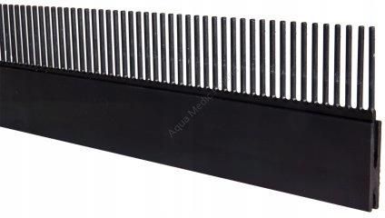 Aqua Medic Grzebień przelewowy 40 cm z klipsami Grzebień bez kieszeni, z klipsami. Grzebień w prosty sposób mocuje się do krawędzi szklanej za pomocą dołączonych klipsów. Grzebień można w łatwy sposób zdemontować do czyszczenia. Nadaje się do szyb o grubości 10 - 12 mm Długość: około 40 cm Wysokość: około 5.5 cm Długość zębów: około 3.7 cm