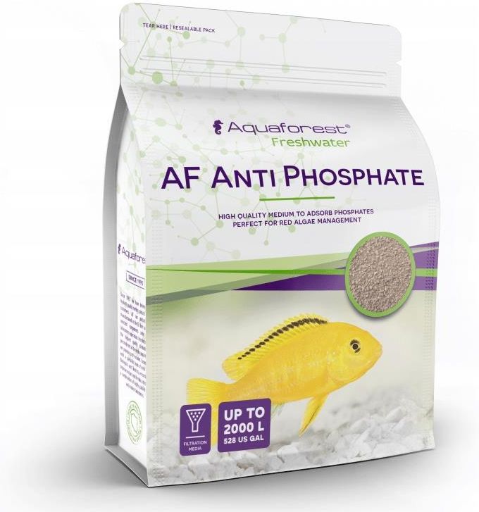 AQUAFOREST AF Anti Phosphate Fresh 1000ml Środek skutecznie eliminujący fosforany z akwarium. Brak równowagi pomiędzy poziomem azotanów i fosforanów w wodzie akwariowej prowadzi do rozwoju cyjanobakterii i powstawania uciążliwych krasnorostów. Dzięki unikalnemu składowi AF Anti Phosphate adsorbuje rozpuszczone w wodzie fosforany bez jednoczesnego pochłaniania witamin i ważnych mikroelementów. Utrzymanie równowagi pomiędzy zawartością fosforanów i azotanów w wodzie zapewnia krystalicznie czystą wodę i optymalne warunki do wzrostu i rozwoju roślin. AF Anti Phosphate poleca się szczególnie w zbiornikach z małą ilością roślin, przerybionych oraz zbiornikach biotopu Malawi i Tanganika. Sposób użycia AF Anti Phosphate należy umieścić w koszu filtra dozując 50 ml preparatu na 100 l wody słodkiej. Zadbaj o Swoje akwarium wybierając najlepsze produkty! AQUAFOREST O marce Aquaforest został założony w 1995 r. Początkowo zajmował się produkcją podłoży i nawozów dla roślin wodnych. Produkty były stosowane w ogrodach zoologicznych, oceanariach, profesjonalnych hodowlach roślin. W 2006 roku rozpoczęli własną hodowlę roślin akwariowych oraz ryb i koralowców, głównie SPS. Wraz z rozwojem hodowli zwiększyło się zapotrzebowanie na profesjonalne produkty do akwarystyki morskiej. Chcąc w pełni kontrolować procesy zachodzące w akwarium zainwestowali w produkcję własnych soli oraz środków chemicznych niezbędnych w akwarystyce morskiej. Zespół złożony z najlepszych specjalistów, latami prowadził badania oraz testy. Wyniki były zadowalające. W rezultacie opracowana została seria produktów o unikatowym składzie oraz niezwykle wysokiej jakości, co znalazło potwierdzenie nie tylko w bardzo wysokich parametrach uzyskanych w hodowli, ale również w wysokiej ocenie niezależnych ekspertów. Tworzone z pasją Ludzi tworzących Aquaforest łączy przede wszystkim pasja do akwarystyki morskiej i hodowli koralowców. Firma chce podzielić się tą pasją z klientami. Znają wszystkie aspekty prowadzenia akwarium, gdyż sami od wielu lat hodują wiele gatunków koralowców nawet tych najbardziej wymagających. Pragną dzielić się doświadczeniami i zdobytą wiedzą. Dostarczyć najwyższej jakości produkty, aby akwaryści – ci początkujący jak i profesjonaliści – mogli tworzyć piękne akwaria morskie. Co wyróżnia Aquaforest? Wszystkie produkty Aquaforest są tworzone z wyselekcjonowanych komponentów. Dokładane są wszelkie starania aby klient otrzymał produkt najwyższej jakości oraz czystości, dlatego też składniki są badane laboratoryjnie na każdym etapie produkcji. Wszystko tworzone jest w Polsce, w Unii Europejskiej. Klienci mogą kontaktować się z producentem na wielu platformach internetowych. Stworzone zostało forum dyskusyjne skierowane do klientów, którzy szukają odpowiedzi na temat stosowania produktów Aquaforest w swoich akwariach. Z myślą o klientach Aquaforest mówi: "Wierzymy, że zakup produktu to dopiero początek drogi, więc zapewniamy kompleksowe wsparcie klienta. Nasi eksperci stworzyli przewodniki i filmy opisujące krok po kroku jak stosować nasze produkty." Katalogi producenta Freshwater:https://aquaforest.eu/freshwater/wp-content/uploads/2020/07/AF-Freshwater_katalog_EN_2020_1.pdf Przewodnik akwarystyczny:https://aquaforest.eu/freshwater/wp-content/uploads/2020/12/AF-Freshwater_Products-Guide_PL_241120.pdf Seawater:https://aquaforest.eu/wp-content/uploads/2020/11/AF_Products-Guide_EN_WEB_241120.pdf
