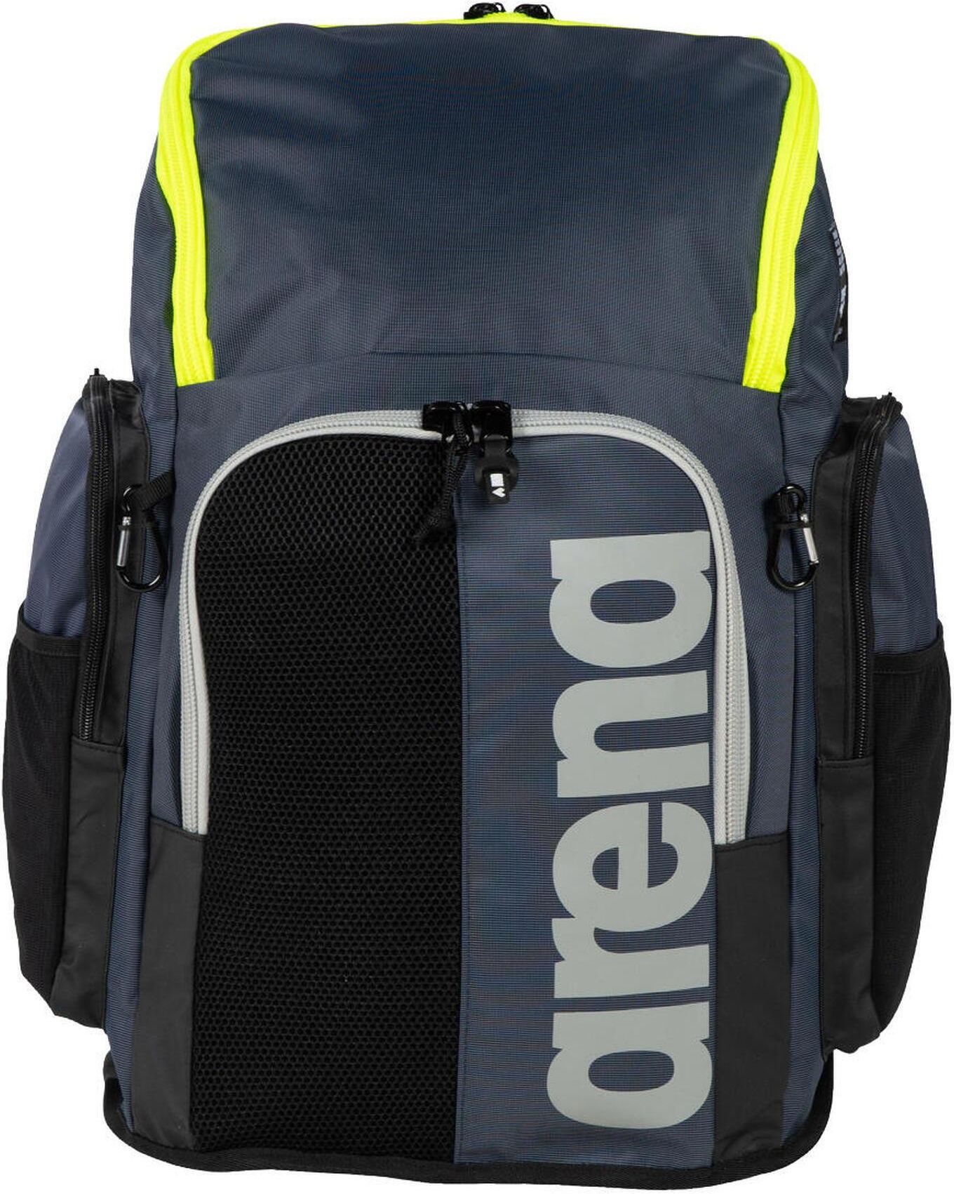 Plecak sportowy Arena Spiky III 45L granatowy Navy Neon Yellow Największy i najbardziej pojemny plecak w rodziny arena Spiky III. W sportowym plecaku arena Spiky III 45L z łatwością zmieścisz swój strój kąpielowy, sprzęt i ręcznik. Jest miejsce na wszystko, także na drogocenne drobiazgi. Schowaj swój smartphone i portfel w przedniej kieszeni na suwak, a ubrania i akcesoria w pojemnych komorach głównych. Plecak wykończony jest wstawkami z siateczki, które pomagają odprowadzać wilgoć. Plecak dostępny w wielu kolorach z kontrastowymi zamkami i nazwą marki w powiększeniu.Plecak ma wymiary 35 x 50 x 25 cm i pojemność 45 litrów. Posiada wodoodporne dno i wentylowane przegródki do przechowywania mokrego sprzętu. Główna komora i mniejsza przednia kieszeń optymalizują organizację rzeczy. Wyściełane szelki i oddychający panel tylny zapewniają wygodę. Boczne kieszenie zapewniają łatwy dostęp do butelek z wodą i innych niezbędnych rzeczy. Cechy produktu: Materiał: 90% poliamid + 10% poliester Kieszeń boczna na butelkę Kieszeń boczna zapinana na suwak Trwałe i odporne na ścieranie wodoodporne dno Wentylowana komora główna Wzmocnione i profilowane plecy Sportowy design Zewnętrzne kieszenie z siatki na bidon Zewnętrzna kieszonka zapinana na suwak Wymiary: 35 x 50 x 25 cm Pojemność 45 l