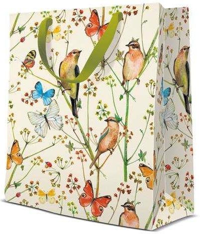 Torebka prezentowa Ptaszki i motyle, średnia Ta torebka będzie idealnym dopełnieniem prezentu. Grafika przykuwa wzrok.Wymiary: 20.0 x 25.0 x 10.0 cm
