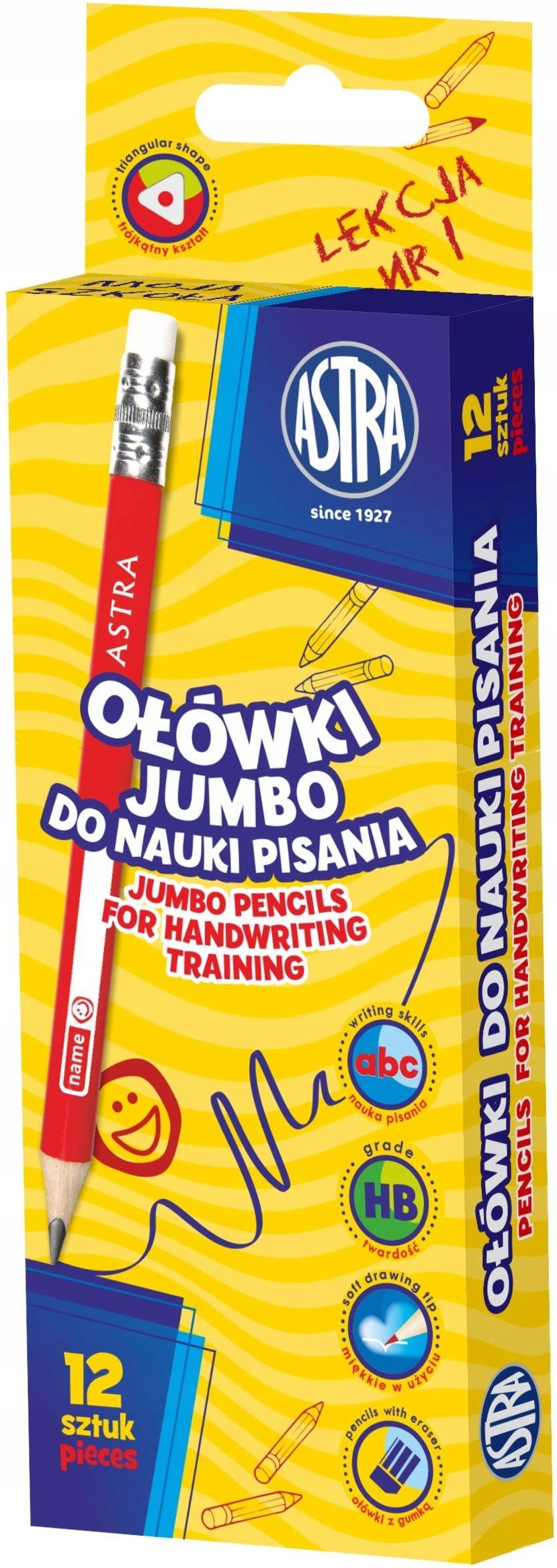 OŁÓWEK DO NAUKI PISANIA ASTRA BOX A'12 0803 OŁÓWEK DO NAUKI PISANIA ASTRA BOX HB GRUBY JUMBO Z GUMKĄ Uwielbiasz prace plastyczne? Jeśli tak, świetnie się składa! Już teraz przedstawiamy doskonały ołówek JUMBO od firmy Astra! Ołówek ma innowacyjny, trójkątny kształt oraz wyjątkową trwałość. …