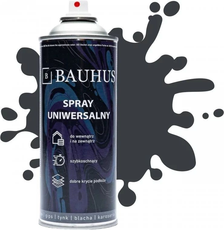 UNIWERSALNA FARBA SPRAY EMALIOWA - RAL 7016 ANTRACYT POŁYSK Farba w Sprayu Uniwersalna Bauhus to prawdziwy must-have dla każdego, kto ceni sobie łatwość użycia, trwałość i wszechstronność. Ta innowacyjna farba w sprayu została stworzona z myślą o Twoich różnorodnych projektach artystycznych, renowacyjnych i dekoracyjnych. Charakteryzuje się niezwykłym kryciem powierzchni, niezależnie od materiału, na którym pracujesz Barwa lakieru jest łatwo rozpoznawalna dzięki kolorowemu deklowi na puszce. Zalety Doskonałe krycie i trwałość na wielu rodzajach powierzchni doskonale sprawdzi się na różnych powierzchniach, w tym drewnie, gipsie, tynku, blachach karoserii, plastiku, metalu, kamieniu i wielu innych. Precyzyjna i równomierna aplikacja farby. Szybkoschnąca formuła, która oszczędza Twój czas -zapewnia błyskawiczne wyschnięcie powierzchni, co pozwala zaoszczędzić Twój czas i skrócić czas oczekiwania na efekty Twojej pracy. Już po krótkim czasie od aplikacji możesz kontynuować pracę lub cieszyć się gotowym projektem. Odporna na warunki atmosferyczne i zużycie, gwarantująca długotrwały efekt - Bez względu na to, czy prace prowadzisz wewnątrz, na drewnianych meblach czy na zewnątrz na karoserii samochodu, spray ten zapewnia trwałe i równomierne pokrycie, które przetrwa próbę czasu. Jego specjalna formuła odporna na warunki atmosferyczne gwarantuje, że Twój projekt będzie wyglądać nieskazitelnie przez lata. Do stosowania w wewnątrz i na zewnątrz ZASTOSOWANIE Malowanie Mebli: idealna do odnawiania i zmieniania wyglądu mebli drewnianych, metalowych czy plastikowych. Renowacja Samochodów: naprawa powłok lakierniczych, malowania detali i zmiany koloru karoserii. Projekty DIY: Farba w sprayu jest nieoceniona w projektach majsterkowiczów i DIY. Można nią malować ramki, ozdoby, sprzęt do ogrodu i wiele innych. Malowanie Rowerów i Sprzętu Sportowego: odnawianie i personalizacja rowerów, kasków, desek surfingowych i innych sprzętów sportowych. Prace Dekoracyjne w Ogrodzie: Do malowania donic, płotów, ławek ogrodowych i innych elementów w ogrodzie. Reparacje Na Płocie i Bramach: Farba w sprayu może służyć do łatwego naprawiania uszkodzeń na płocie i bramach.