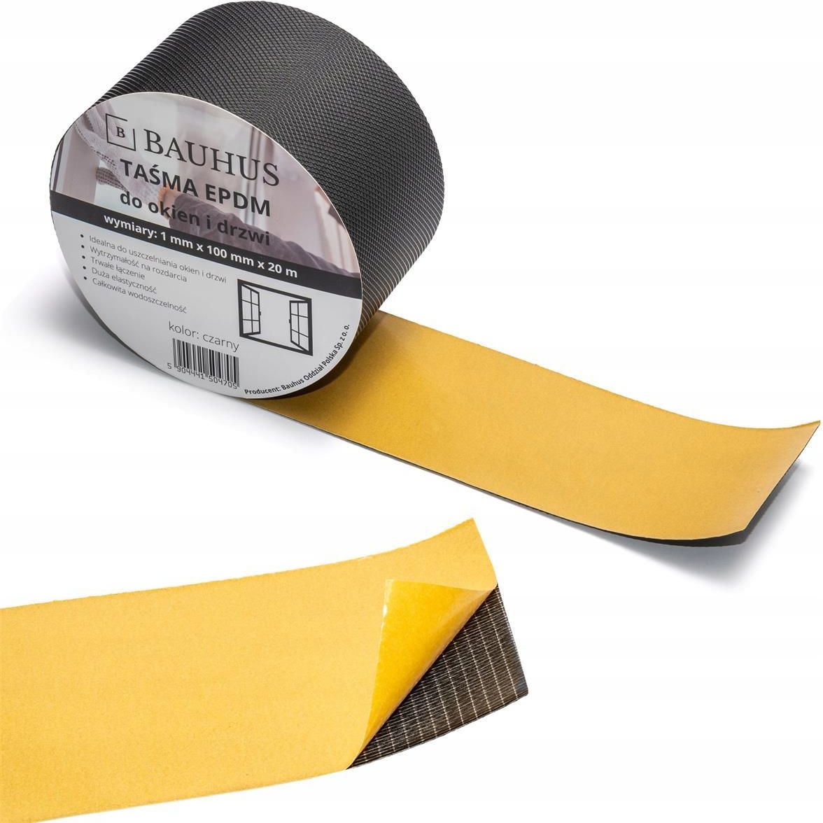 ⌚️Bauhus Taśma Uszczelniająca EPDM CZARNA - Doskonała Ochrona Twojego Dachu i Okien! 1mmx100mmx20m 1szt.✅Szukasz skutecznego rozwiązania, które zapewni niezawodną ochronę Twojego dachu przed wilgocią i warunkami atmosferycznymi?✅Taśma uszczelniająca Bauhus EPDM 100mm x 20m to idealne rozwiązanie!✅Rozmiar: 1mm x 100mm x20m 1szt.✅Wodoodporna i wytrzymała na wilgoć taśma uszczelniająca służy do zabezpieczania połączeń pomiędzy solarką okienną a ścianą.✅Taśma EPDM może być stosowana jako środek zapobiegający przedostawaniu się wody lub wilgoci do wnętrza ściany.✅Taśma jest stosowana po wewnętrznej stronie ściany wewnętrznej, aby działać jako bariera hamująca przepływ ciepłego powietrza z wnętrza budynku na zewnątrz.✅Jest również wykorzystywana jako bariera wilgocioodporna na podkonstrukcji podtrzymującej płyty elewacyjne.✅Dodatkową funkcją jest ułatwienie ruchu podkonstrukcji i okładziny elewacyjnej, co jest rezultatem zmian temperatury i wilgotności powietrza.⚙️Zastosowanie⚙️:✅Dachy: Taśma EPDM 100mm x 20m skutecznie chroni dachy przed deszczem i wilgocią, zapewniając spokój przez wiele lat.✅Okna i drzwi: Dzięki elastyczności i trwałości, taśma doskonale zabezpiecza okna i drzwi przed przeciągami oraz wodą.✅Inne powierzchnie: Możliwości zastosowania są nieograniczone — użyj jej tam, gdzie potrzebujesz skutecznej ochrony przed wilgocią.➕Zalety➕:✅Wykonana z wysokiej jakości gumy EPDM, taśma jest niezwykle trwała i odporna na działanie warunków atmosferycznych, promieniowanie UV oraz chemikaliów.✅Dzięki swojej elastycznej strukturze doskonale dopasowuje się do różnych kształtów i powierzchni, zapewniając doskonałą szczelność.✅Idealna do uszczelniania dachów płaskich, pochyłych, okien, drzwi oraz innych powierzchni wymagających wodoszczelności.✅Łatwa w użyciu — wystarczy odkleić osłonę i przykleić taśmę do odpowiedniej powierzchni.✅Specyfikacja:✔️Materiał: EPDM✔️Szerokość: 100mm✔️Długość: 20m✔️Kolor: Czarny