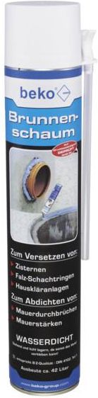 Beko piana do kręgów studziennych 750ml wężykowa Wodoszczelna piana BEKO DO KRĘGÓW STUDZIENNYCH I PRZEPUSTÓWOPIS PRODUKTU: - UŁATWIA I PRZYŚPIESZA OSADZANIE ŁĄCZONYCH ELEMENTÓW- TWORZY WODOSZCDZELNE POŁĄCZENIE DO 0,8BAR = 8 METRÓW- DO OSADZANIA ZBIORNIKÓW WODNYCH, KRĘGÓW STUDZIENNYCH ŁĄCZONYCH NA PIÓRO I WPUST, PRZYDOMOWYCH OCZYSZCZALNI ŚCIEKÓW- DO USZCZELNIANIA PRZEPUSTÓW W MURACH, KOTEW MUROWYCH- WODOSZCZELNA- SPRAWDZONA WYTRZYMAŁOŚĆ NA ŚCISKANIE-ODPORNA NA BENZYNĘ, OLEJ ORAZ WSZYSTKIE BAKTERIE I KWASY OBECNE W GLBIE- SZYBKO WIĄŻE- LEPSZE DOZOWANIE DZIĘKI OBRÓBCE ZA POMOCĄ PISTOLETU- ODPORNA NA STARZENIE- ŁATWE UŻYTKOWANIE- ZASTĘPUJE NANOSZENIE ZAPRAWY- MOŻLIWOŚĆ KRYCIA TYNKIEM I MALOWANIA- POJEMNOŚĆ: 750ML