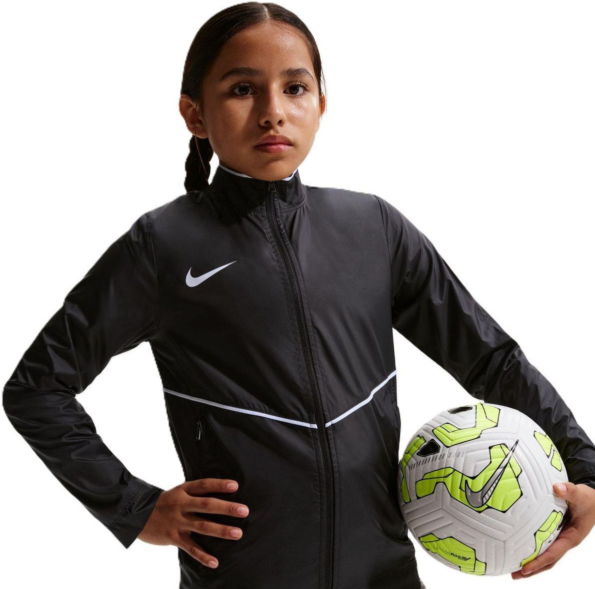 Wybierz dla swojego dziecka kurtkę przeciwdeszczową Nike dbającą o jego komfortową ochronę, kiedy wybiera się na zajęcia sportowe lub trenuje w niepewną pogodę. Lekki model z wodoodpornego materiału chroni przed lekkim deszczem i wilgocią. Standardowy krój sięgający do linii bioder naturalnie układa się na sylwetce zapewniając nieograniczony zakres ruchów. Stójka dodatkowo osłania szyję przed chłodem. Zapinane kieszenie boczne umożliwiają bezpieczne przechowywanie drobiazgów, które Twoje dziecko chce mieć zawsze przy sobie. Długi zamek jest praktycznym rozwiązaniem, oferującym szybkość i łatwość zdejmowania kurtki w momencie wejścia z ławki na boisko. Jednokolorowy koncept doskonale uzupełniają lamówki oraz kontrastowe logo brandu. Materiał: część główna: 100% poliester; podszewka: 100% poliester