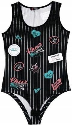 Body damskie z nadrukiem - najmodniejszy print sezonu!Rozciągliwy materiał przylegający do ciała.Pięknie wygląda i dodaje wdzięku.KOLOR - CZARNYROZMIAR - uniwersalnyWYMIARYdługość (mierzona od dekoltu) - 57cmszerokość w biuście - 39cm x 2szerokość talii - 34cm x 2szerokość bioder - 37cm x 2szerokość ramiączek - 5,5cmszerokość dołu - 5cm