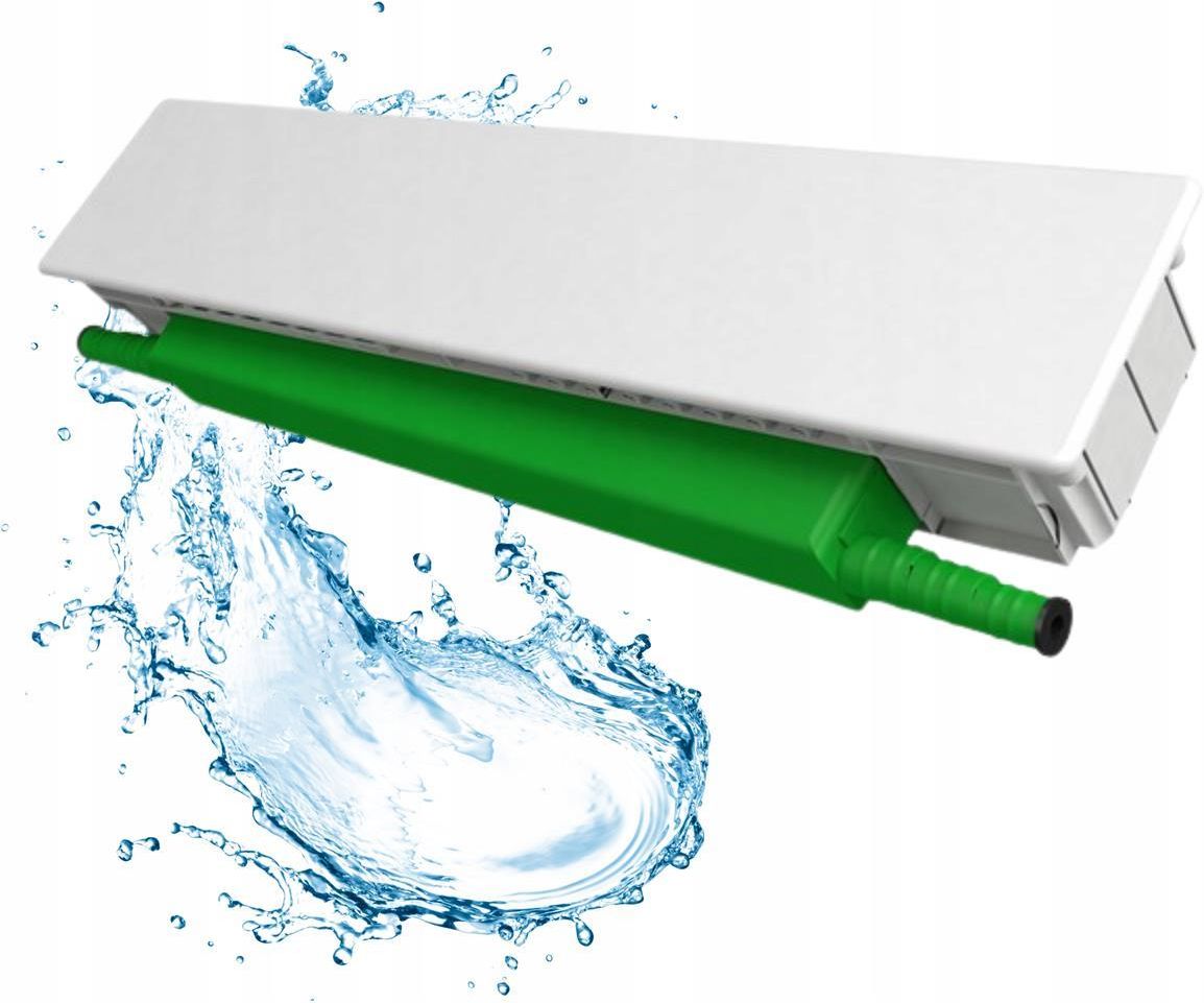 Zbiornik kondensatu klimatyzacji podtynkowej WALLBOX 52CM Zbiornik kondensatu klimatyzacji podtynkowy Wallbox 52 cm to urządzenie przeznaczone do odprowadzania skroplin (kondensatu) powstających w systemach klimatyzacyjnych. Jest to specjalistyczny zbiornik montowany pod tynkiem, który pozwala na bezpieczne i estetyczne zarządzanie skroplinami bez konieczności instalacji zewnętrznych rur odprowadzających wodę. Główne cechy i funkcje Podtynkowa konstrukcja: Zbiornik jest zaprojektowany w taki sposób, aby można było go zainstalować bezpośrednio w ścianie, dzięki czemu nie jest widoczny i nie zajmuje dodatkowej przestrzeni w pomieszczeniu. Wielkość: Wallbox o szerokości 52 cm to standardowa wielkość, która pasuje do większości instalacji klimatyzacyjnych. Dzięki tej wielkości można zamontować go w różnych konfiguracjach wnętrz. Odprowadzanie skroplin: Zbiornik gromadzi wodę powstałą na skutek kondensacji wilgoci zawartej w powietrzu, co jest szczególnie istotne w przypadku systemów klimatyzacyjnych, które generują dużą ilość kondensatu. Łatwość montażu: Dzięki swojej konstrukcji, zbiornik można łatwo zamontować podczas instalacji klimatyzatora. Jest to wygodne rozwiązanie w sytuacjach, gdzie konieczne jest ukrycie odprowadzania skroplin. Materiał i trwałość: Zbiornik wykonany jest z materiałów odpornych na korozję, co zapewnia długowieczność oraz niezawodność nawet w trudnych warunkach eksploatacyjnych. Estetyka: Jako element podtynkowy, zbiornik nie zaburza estetyki wnętrza, a po zainstalowaniu pozostaje niewidoczny. Zastosowanie W budynkach mieszkalnych: W szczególności w nowoczesnych mieszkaniach, gdzie ważne jest ukrycie instalacji. W biurach i przestrzeniach komercyjnych: Tam, gdzie estetyka jest równie ważna co funkcjonalność. W systemach klimatyzacyjnych split: W które kondensat musi być odprowadzany w sposób dyskretny i bezpieczny. Dane techniczne Typ produktu: Zbiornik kondensatu klimatyzacji podtynkowy Wallbox Długość: 52 cm Podwójna dysza łącząca: Tak Materiał 1: PS (polistyren) Materiał 2: WF (włókno szklane) Kolor 1: Biały Kolor 2: Zielony