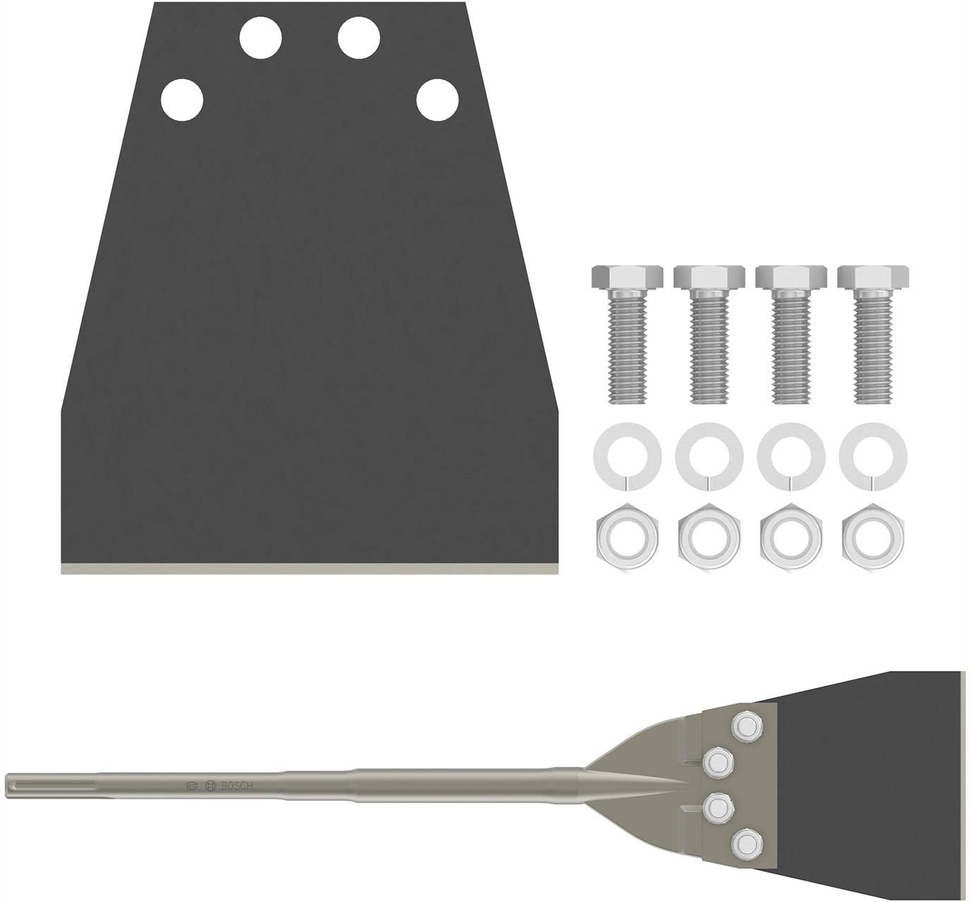 Zestaw wymienny do skrobaczki PRO SDS max Pasuje do skrobaczki Bosch PRO SDS max Floor Scraper 2608690612 Szybkie usuwanie płytek Szeroka krawędź tnąca zwiększa szybkość usuwania materiału Szybkie usuwanie płytek 1 Szeroka krawędź tnąca zwiększa szybkość usuwania materiału 2 Wymienne ostrze można odkręcić i zdjąć z uchwytu PRO SDS max Floor Scraper do szybkiego usuwania płytek Jeśli szukasz skrobaka do skutecznego zrywania płytek w łazience i w kuchni, to mamy dla Ciebie niezawodny produkt. Wypróbuj PRO SDS max Floor Scraper. Szybko i łatwo usuniesz płytki, zaprawę, wykładzinę podłogową, tapety i linoleum. PRO SDS max Floor Scraper to osprzęt dla ekip remontowych do skutecznego zrywania płytek ze ścian i podłóg. Ostrze o średnicy 152 mm jest wykonane z wytrzymałej stali, by zapewnić długą żywotność i możliwość usuwania większej ilości materiału niż za pomocą mniejszych skrobaków. Ostrze jest przymocowane do sztyftu za pomocą śrub i nakrętek, by ograniczyć wibracje. Ten wszechstronny skrobak pozwala też usunąć zaprawę, wykładzinę podłogową, tapety i linoleum.