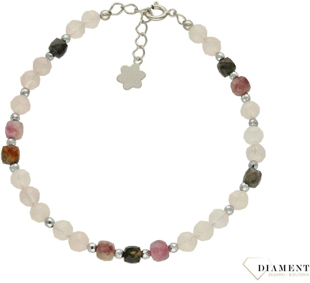 Bransoletka damska kamienie naturalne turmalin, perła, kwarc różowy Toruń