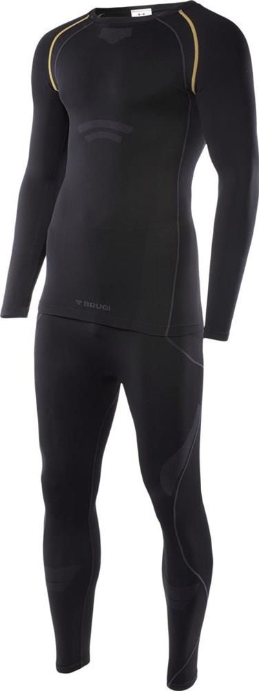 Bielizna termoaktywna męska zestaw bluza + spodnie kalesony legginsy Brugi 4RCG czarny rozmiar L/XL Bielizna posiada bezszwową konstrukcję, dzięki czemu nie powoduje dyskomfortu i minimalizuje ryzyko występowania podrażnień i otarć. Elastyczny materiał zapewni odpowiednie dopasowanie i pełną swobodę ruchów. Model ten przystosowany jest do niskich temperatur i zapewni odpowiedni komfort termiczny. Skutecznie ochroni przed wychłodzeniem, a także przed przegrzaniem. Szybkoschnący materiał i skuteczne odprowadzanie wilgoci to gwarancja wysokiego komfortu. Model ten posiada właściwości oddychające, dzięki czemu pozwala na poczucie świeżości nawet przez cały dzień użytkowania. Bielizna sprawdzi się podczas uprawiania sportów zimowych, czy wędrowania po górach. Doskonała do stosowania jako pierwsza warstwa w mroźne, zimowe dni. - poliester 63% - poliamid 29% - elastan 8% Airway - oddychająca tkanina zapewnia skórze niezbędną cyrkulację powietrza. Technologię często wykorzystuje się w termoaktywnej bieliźnie, ponieważ oddychający materiał sprzyja wzmożonej aktywności fizycznej. Quick Dry - materiał świetnie radzi sobie z wilgocią. Tkanina Quick Dry wyróżnia się szybkoschnącymi właściwościami, idealnie radząc sobie z wilgocią wytwarzaną w czasie ruchu oraz nieprzyjaznymi warunkami atmosferycznymi. Seamless - niewyczuwalne szwy zapewniają maksymalny komfort i wygodę podczas użytkowania. Bezszwowa konstrukcja minimalizuje ryzyko otarć w trakcie aktywności fizycznej i jest bezpieczna w kontakcie ze skórą.