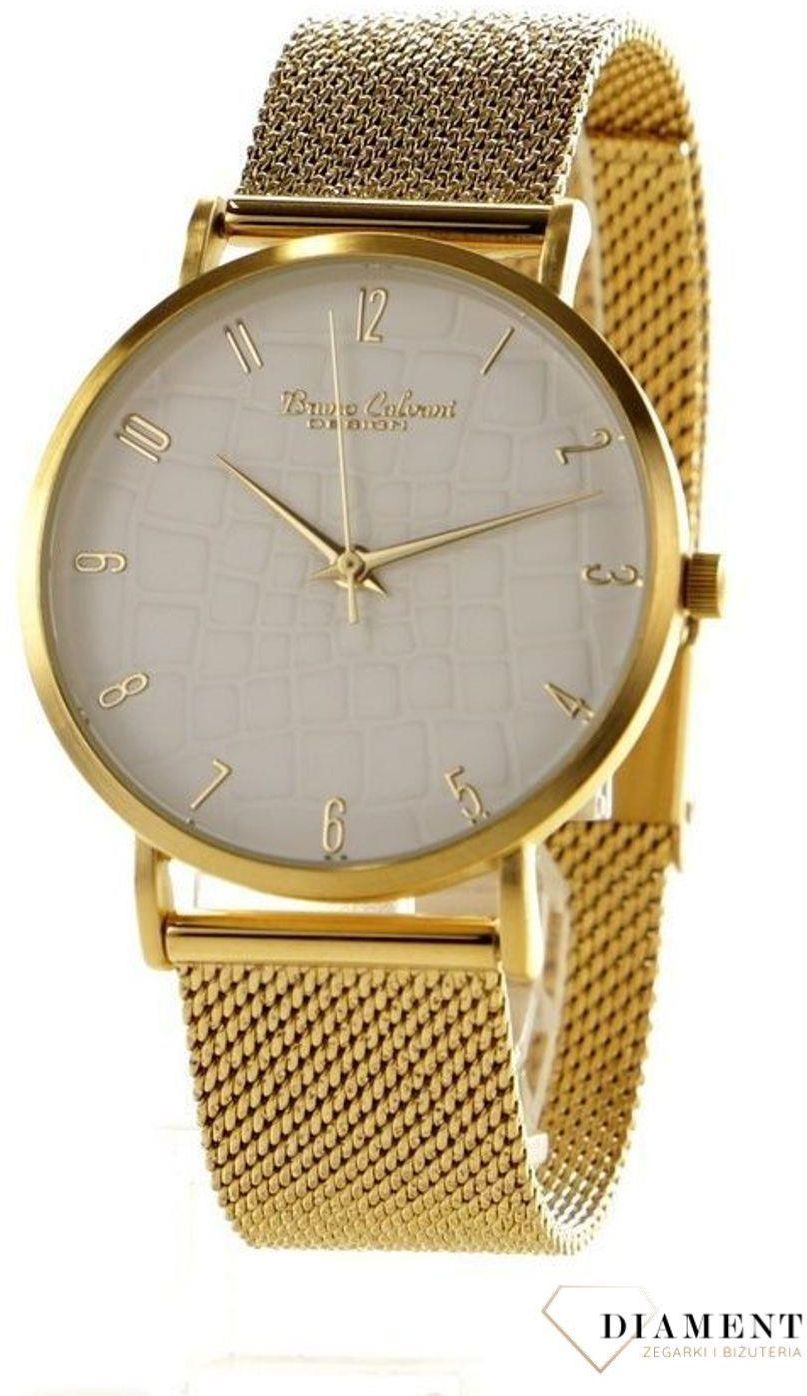 Mechanizm zegarka: Zegarek damski na bransolecie mesh z cyframi Bruno Calvani BC90550 Gold wyposażony jest w kwarcowy mechanizm, zasilany za pomocą baterii. Posiada bardzo wysoką dokładność mierzenia czasu +/- 10 sekund w przeciągu 30 dni. Koperta zegarka: Mechanizm japoński mieści się w okrągłej, …