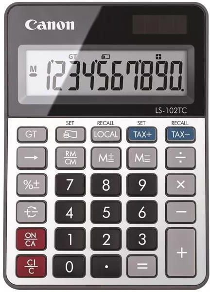 Kalkulator Canon LS-102TC Niewielki kalkulator biurkowy Canon HS-20TSC idealnie sprawdzi się zarówno w domu, jak i w biurze. Kalkulator jest zasilany energią słoneczną i ma wymienna baterię, która umożliwia dłuższe korzystanie. Na 12-cyfrowym wyświetlaczu LCD można wykonywać wiele różnych poleceń, takich jak obliczanie podatku, konwersja waluty i obliczenia biznesowe. Dzięki temu ten niewielki kalkulator biurkowy jest prosty w obsłudze. Duży ustawiony pod kątem wyświetlacz umożliwia łatwe odczytywanie wszystkich obliczeń, a elegancka konstrukcja i wygoda użytkowania pomogą Ci w wykonywaniu codziennych zadań. Główne cechy i korzyści 12-cyfrowy ustawiony pod kątem wyświetlacz, z którego łatwo można odczytać obliczenia Podwójne źródło zasilania: bateria słoneczna i tradycyjna Elegancka konstrukcja z metalową przednią płytką Obliczenia podatkowe i biznesowe Przeliczanie walut Składana podpórka ułatwiająca odczytywanie Możliwość uwzględnienia stawki podatkowej w obliczeniach lub jej wykluczenia Obliczenia kosztów, cen sprzedaży i marży Produkowany częściowo z materiałów odzyskanych z urządzeń firmy Canon poddanych recyklingowi