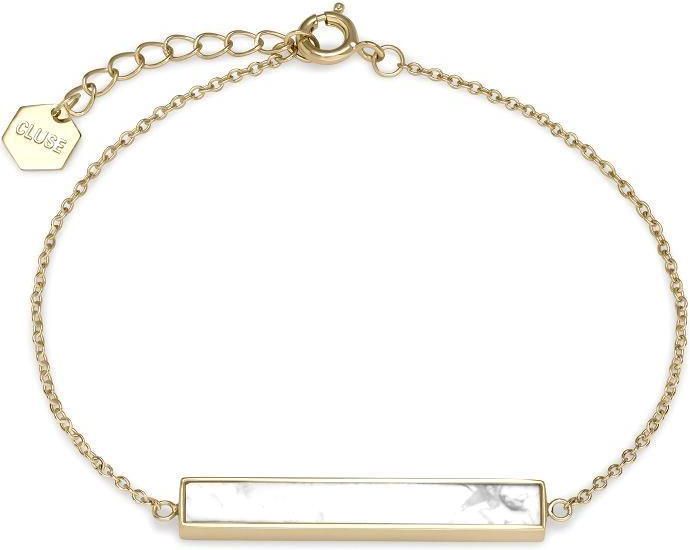 Nowoczesny design, stylistyka oparta na dynamicznych liniach, a przy tym subtelna stylistyka taka właśnie jest biżuteria Cluse, która jest idealnym dodatkiem każdej stylizacji znakomicie pasuje do eleganckiej sukienki i casualowych outfitów w każdej chwili podkreślając charakter i dobry gust swojej właścicielki. Biżuteria Cluse rewelacyjnie prezentuje się solo, pojedynczo lub połączona z innymi modelami, ale także z zegarkami Cluse, tworząc modny, stylowy komplet. Bransoletka Cluse CLJ11012 Idylle Gold ​Marble Bar Chain ​Bracelet została zaprojektowana jak wszystkie modele z tej kolekcji w oparciu o minimalistyczny styl i prostotę, która sama w sobie jest piękna, a dodatkowo uniwersalna i ponadczasowa. Wykonana została z mosiądzu, pozłacanego 18 karatowym złotem i kamienia naturalnego. Jest to bransoletka składająca się z łańcuszka o splocie typu ankier, na którym w centralnej części umieszczono prostokątny element ozdobny o wzorze marmuru. Zapięciem tej bransoletki jest karabińczyk dający możliwość regulacji długości w zakresie 150 175 mm. Bransoletka Cluse Idylle Gold ​Marble Bar Chain ​Bracelet CLJ11012: materiał wykonania mosiądz, pozłacany 18 karatowym złotem oraz kamień naturalny turkus biały kolor złoto, białoszary kamień zapięcie bransolety karabińczyk rozmiar 150 175 mm W komplecie z bransoletką otrzymujesz oryginalne opakowanie Cluse eleganckie pudełko z poduszeczką wyściełaną aksamitem, dzięki czemu to znakomity pomysł na prezent dla kobiety w każdym wieku.