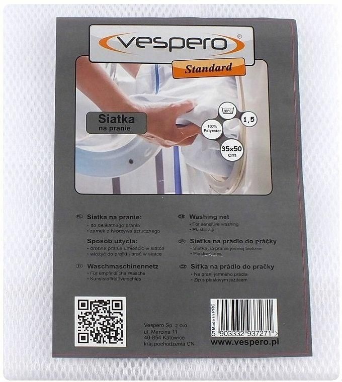 ✅ VESPERO - Siatka - Worek na pranie bielizny - 30x50 cm - 1,5 kg ✨ Informacje podstawowe Woreczek ochronny (siatka) do prania większej garderoby, firanek, innych delikatnych tkanin. Zamykany zamkiem błyskawicznym z tworzywa. Doskonały do zabezpieczenia garderoby, przed skutkami częstego prania w pralce. Cechy: Woreczek mieści 1,5 kg wsadu Produkt odporny na wysoką temperaturę (do 90 stopni) Kolor: biały Materiał: 100% poliester wymiary: 30 x 50 cm ✨ Informacje dodatkowe Marka: Vespero SKU: SA2937172