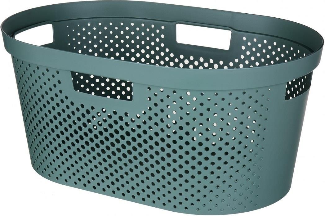CURVER - Kosz na czyste pranie - INFINITY - owalny - zielony - 40 L Informacje podstawowe Ten stylowy i funkcjonalny kosz na czyste pranie marki Curver to idealne rozwiązanie, które ułatwi Ci utrzymanie porządku w łazience czy pralni. Dzięki pojemności 40 litrów zmieścisz w nim sporo brudnej bielizny, a jego owalny kształt doskonale pasuje do wielu wnętrz. Wymiary 58,5 x 38,0 x 26,5 cm zapewniają wystarczająco dużo miejsca na pranie nawet dla większych rodzin. Wykonany z trwałego tworzywa sztucznego w kolorze zielonym, ten kosz nie tylko prezentuje się elegancko, ale także jest łatwy w utrzymaniu czystości. Otwory wentylacyjne, które znajdują się w koszu, pozwolą Twojemu praniu "oddychać", co z kolei wpłynie pozytywnie na jego świeżość. To praktyczne rozwiązanie, które dba zarówno o czystość Twoich ubrań, jak i o estetykę pomieszczenia. Dzięki ergonomicznym uchwytom z łatwością przeniesiesz kosz z praniem z łazienki do pralni czy pozostałych pomieszczeń. Ten funkcjonalny element nie tylko ułatwi Ci segregację brudnej bielizny, ale także sprawi, że Twoje pranie będzie zawsze poukładane i gotowe do prania. Marka Curver gwarantuje wysoką jakość wykonania, dlatego możesz być pewny, że ten kosz posłuży Ci przez wiele lat. Oferowany kosz na czyste pranie marki Curver to idealny wybór dla tych, którzy cenią sobie porządek i praktyczne rozwiązania w swoim domu. Dzięki 40 litrowej pojemności i stabilnej konstrukcji, pranie będzie zawsze poukładane, a Ty oszczędzisz cenny czas na codzienne obowiązki. Postaw na jakość i funkcjonalność z koszem Curver! Cechy i zalety pojemny - idealny dla dużych rodzin - 40 L wytrzymały - wykonany z wysokiej jakości tworzywa sztucznego praktyczny - ażurowa konstrukcja zapewnia cyrkulację powietrza łatwy do przenoszenia - posiada wygodne uchwyty uniwersalny - pasuje do każdego wnętrza Specyfikacja producent: Keter marka: Curver linia: Infinity pojemność: 40 L wymiary: szerokość: ↔️ 58,5 cm długość: ↗ 38,0 cm wysokość: ↕️ 26,5 cm kolor: zielony materiał: tworzywo sztuczne Informacje dodatkowe Marka: Curver SKU: 755243 - zielony