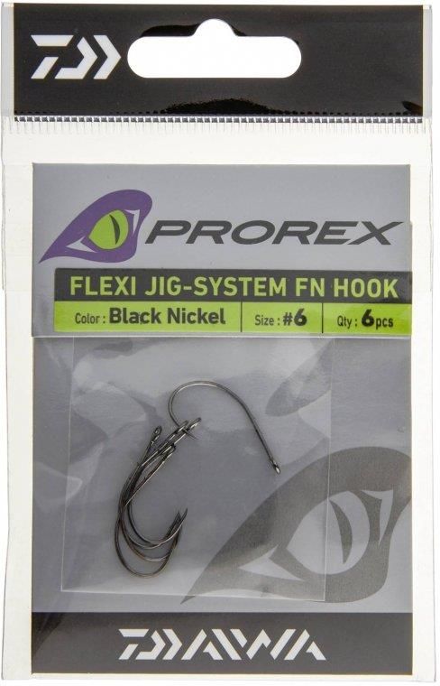 Wysokiej jakości haki z chemicznie ostrzonej stali, pasują do systemu Prorex TG Flex Jig. Ekstra duże ucho pozostawia przynęcie na główce dużo swobody ruchu. Dzięki tak dużemu uchu haki mogą być stosowane z kółkami łącznikowymi, kiedy musimy użyć pojedynczego haka np. do wahadłówki. Wielkości: #1, #2, #4, #6