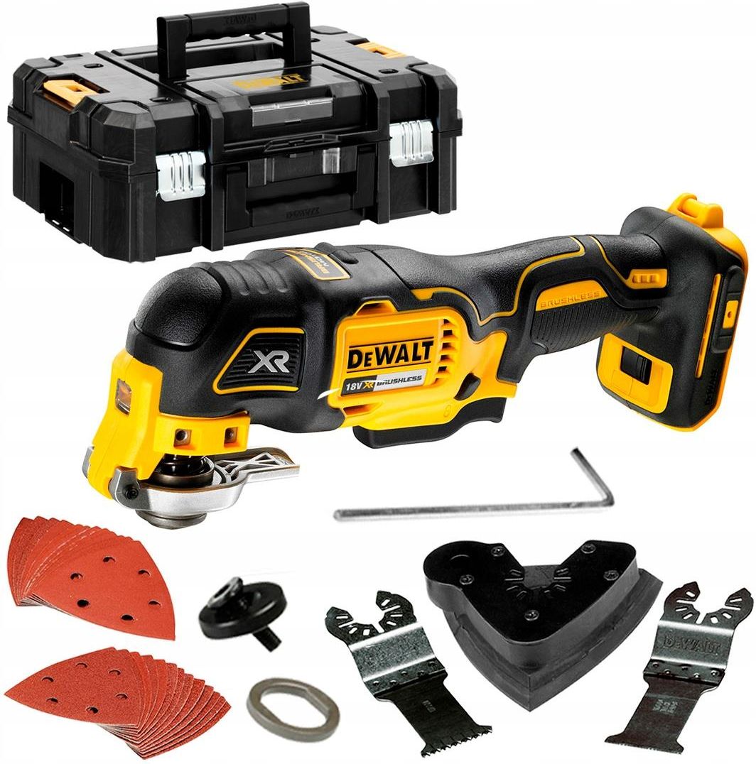 akumulatorowe narzędzie wielofunkcyjne Li-Ion 18V DeWalt DCS356NT znakomite urządzenie wielofunkcyjne wyposażone zostało w najnowszy, bezszczotkowy silnik, dzięki 3-stopniowemu przełącznikowi maksymalnej prędkości i dodatkowej regulacji na spuście (włączniku) urządzenia można jeszcze precyzyjniej dobrać prędkość do wykonywanych prac, wyposażone jest w gniazdo odsysania pyłu AirLock, diodę LED oświetlająca miejsce pracy, to najwszechstronniejsze i niezawodne narzędzie do prac wykończeniowych - remontowych, prac instalacyjnych czy przy obróbce różnych trudnych materiałów (włókno szklane, twarde tworzywa) również przy pracach renowacyjnych, paleta możliwych prac tym narzędziem jest szeroka i uzależniona jest od zastosowanego akcesoria, dostępna jest bardzo szeroka gama ostrzy/brzeszczotów czy akcesoriów do szlifowania, DCS356 ma ergonomiczną budowę, łatwo to narzędzie obsługiwać jedna ręką, dzięki niewielkiej średnicy i wygodnemu dużemu wyłącznikowi z elektroniczną regulacją częstotliwości skoku. posiada o ponad 20% mniejsze wibracje od poprzednika, jest to przydatne w bardzo precyzyjnych pracach wyposażone zostało w system szybkiej wymiany akcesorii Quick Change, narzędzie wielofunkcyjne DCS356 ma na wyposażeniu ogranicznik głębokości cięcia, który bardzo jest pomocny przy precyzyjnych cięciach, w tej wersji bez akumulatora i ładowarki, pakowane w walizce. PARAMETRY TECHNICZNE NARZĘDZIA WIELOFUNKCYJNEGO DEWALT [DCS356NT-XJ] napięcie zasilania: 18 V, typ akumulatorów: Li-ion, wymiary (D x S x W): 310 mm, waga (EPTA): 1,1 kg. WYPOSAŻENIE NARZĘDZIA WIELOFUNKCYJNEGO DEWALT [DCS356NT-XJ] walizka systemowa Tstak, brzeszczot do cięcia drewna z gwoździami 31 x 43 mm [DT20701], brzeszczot do precyzyjnego cięcia drewna 10 x 43 mm [DT20706], brzeszczot do szybkiego cięcia drewna 31 x 43 mm [DT20704], brzeszczot półokrągły, do cięcia drewna z gwoździami 100 mm [DT20708], brzeszczot półokrągły z węglikiem do usuwania fug, 100 mm [DT20717], skrobak sztywny szerokości 52 mm [DT20714], adapter do ustalania głębokości cięcia, stopa z rzepem na papier do szlifowania [DT20700], 9 arkuszy papieru ściernego (ziarnistość 60 / 120 / 240), uniwersalny adapter do akcesoriów + klucz trzpieniowy, system do odciągu Air-Lock do stopy szlifującej + uniwersalna przystawka do odciągu współpracująca z brzeszczotami