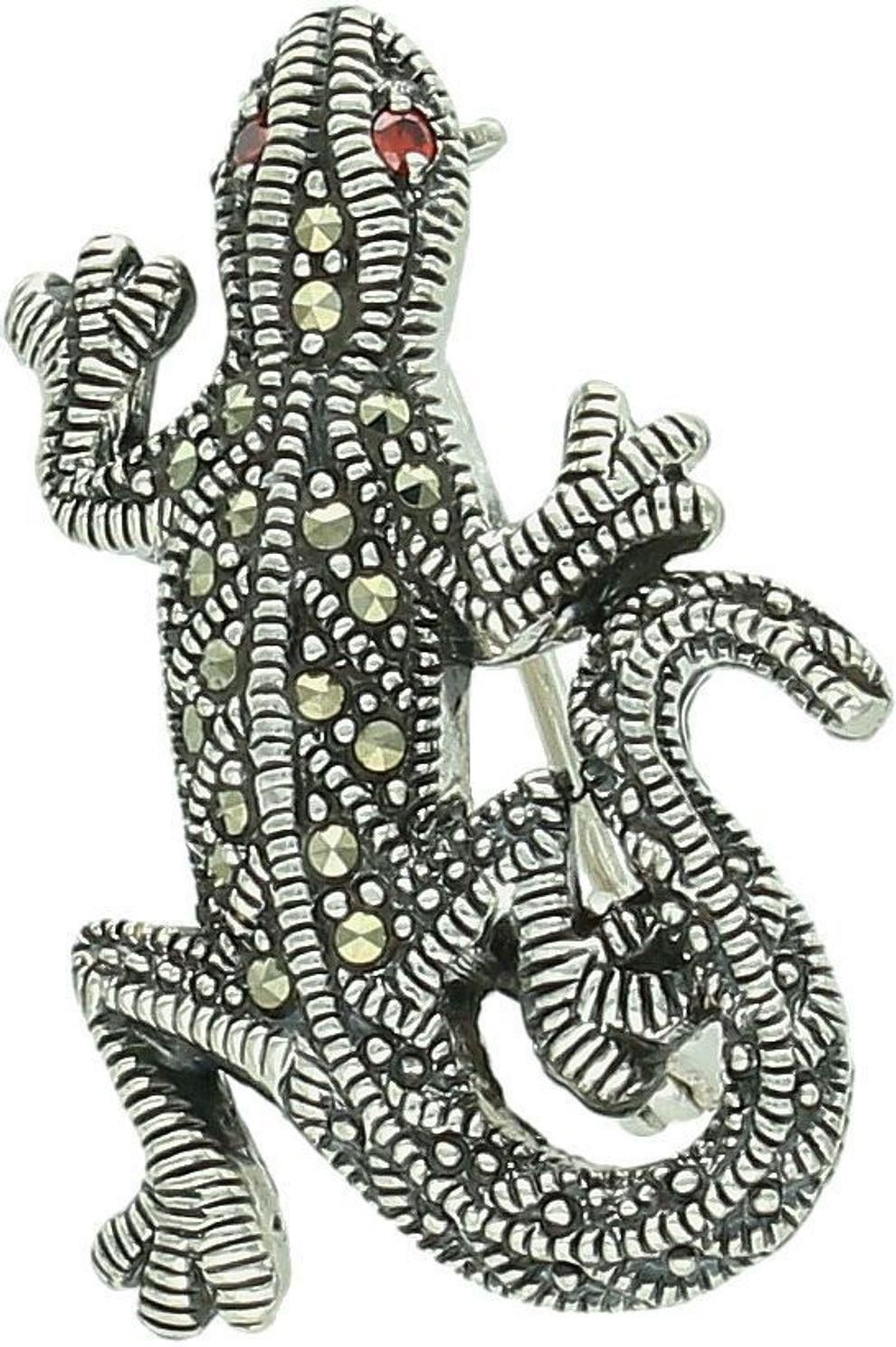 Diament Broszka Srebrna Damska 925 Jaszczurka Z Markazytami i Czerwonymi Cyrkoniami – DIA-BRO-13013-925 | Elegancka Biżuteria Toruń