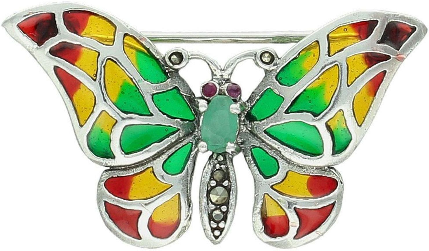 Diament Broszka Srebrna Damska 925 Motylek Zdobiona Kolorową Emalią Cyrkonią i Markazytami – DIA-BRO-12999-925 | Elegancka Biżuteria Toruń