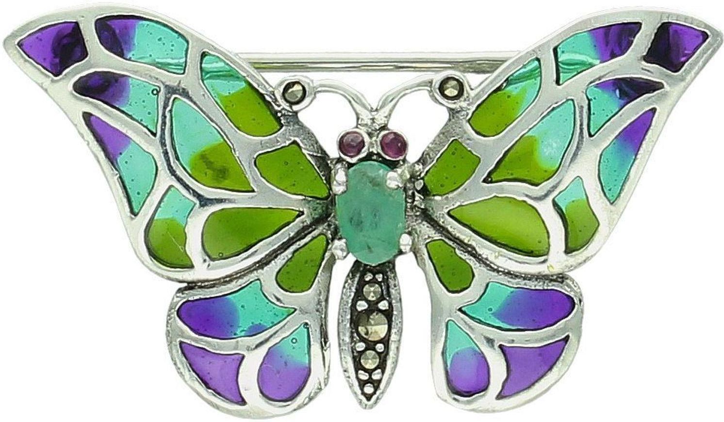 Diament Broszka Srebrna Damska 925 Motylek Zdobiona Kolorową Emalią z Cyrkonią i Markazytami – DIA-BRO-12998-925 | Elegancka Biżuteria Toruń