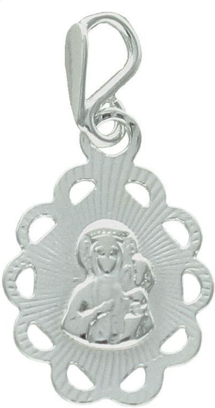 Srebrna zawieszka medalik rodowany z Matką Boską z dzieciątkiem DIA-ZAW-11526R-925 Srebrna zawieszka została wykonana z najwyższej jakości srebra próby 925. Zawieszka medalik został starannie ozdobiony wizerunkami świętych. Idealny prezent na komunię, chrzest czy inne uroczystości. Nasze zawieszki są wykonane z dbałością o każdy szczegół i detal. Srebrne zawieszki są także bardzo oryginalne i wykonane w noszeniu. Srebrna Zawieszka to biżuteria lubiana przez wiele kobiet, rozmaitość wzorów i różnorodność kolorów sprawia że każda z kobiet znajdzie coś wyjątkowego dla siebie. Srebrna biżuteria może być ozdobiona różnym wzorem bądź grawerem dzięki czemu będzie idealnym pomysłem na prezent. Wielkość zawieszki: 1,8 cm Waga zawieszki: 0,95 g