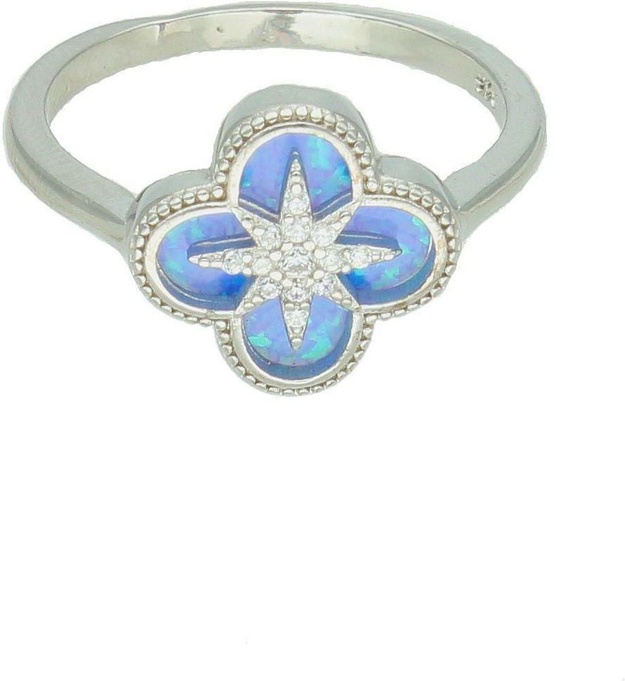 Srebrny pierścionek damski 925 koniczyna z niebieskim opalem i cyrkoniami DIA-PRS-12269-925Srebrny pierścionek wykonany z najwyższej jakości srebra w formie koniczyny. Idealny pomysł na prezent. Srebrny pierścionek wykonany z próby 925 ozdobiony niebieskim opalem i cyrkoniami Srebrny pierścionek …