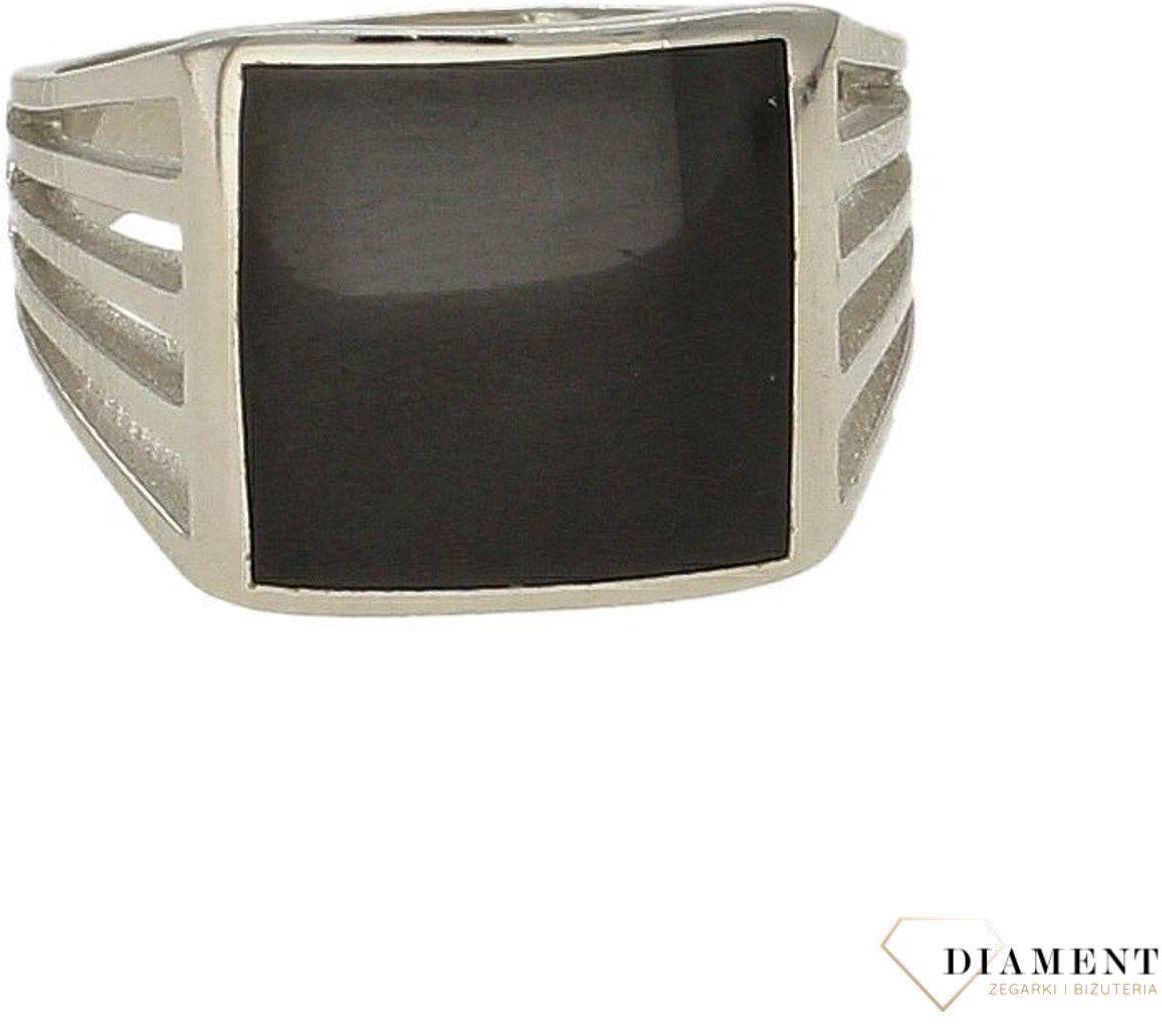 DIAMENT SYGNET MĘSKI SREBRNY Z CZARNYM OCZKIEM 925 Toruń