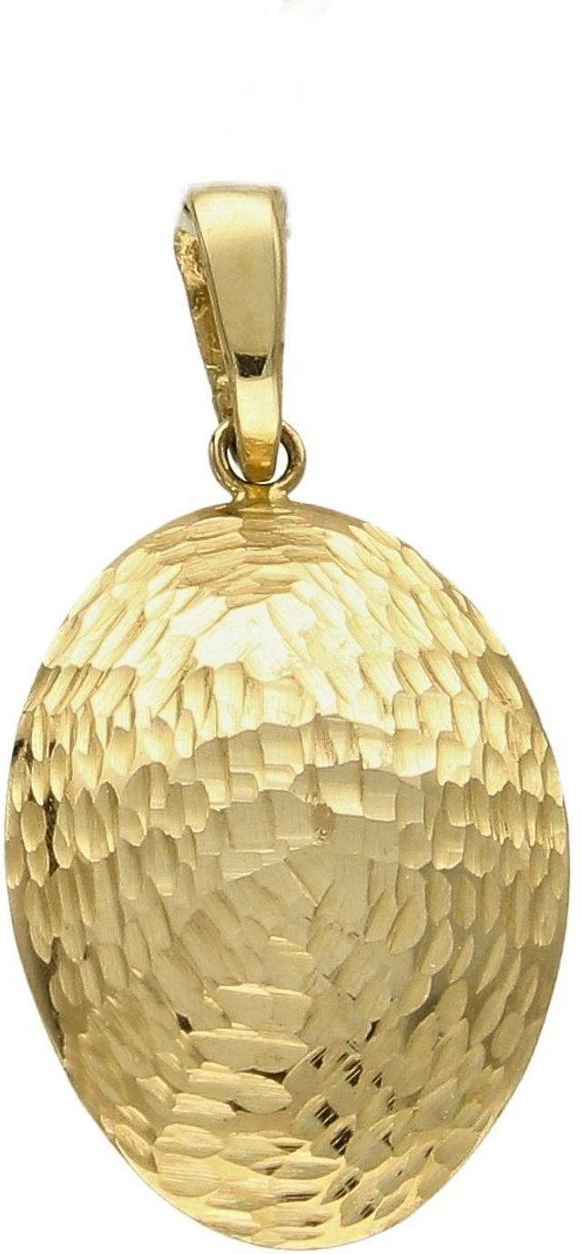 Złota zawieszka w ponadczasowym prostym kształcie o grawerowanej powierzchni. Złoty wisiorek w ponadczasowym kształcie. Wisiorek to idealny pomysł na prezent, którym wyjawimy swoje uczucia. Złoto jest metalem szlachetnym znanym i kochanym przez kobiety już od starożytności, a ozdoba w postaci jednej subtelnej zawieszki dodaje mu jeszcze więcej uroku i połysku. Wisiorek ten to idealny pomysł na prezent, którym wyjawimy swoje uczucia. Do zawieszki można dobrać łańcuszek o ulubionym splocie, np. ankier lub pancerka będą pasować idealnie. W kolekcji biżuterii możemy znaleźć wiele wzorów złotych kolczyków z podobnym motywem, które mogą uzupełnić ten wisiorek, tworząc komplet. Zawieszka wykonana z najwyższej jakości złota próby 585. Waga około 1,55 gram. Wielkość zawieszki wynosi około 2,8 cm. > Dobierz idealny łańcuszek! > Złote łańcuszki Złota biżuteria dostępna w naszym sklepie to połączenie klasy, stylu oraz elegancji. Starannie wyselekcjonowane dodatki zachwycają wysoką jakością użytych materiałów, dbałością o każdy, nawet najmniejszy szczegół oraz niebywałą precyzją wykonania. Stworzone z myślą o każdej kobiecie, doskonale prezentują się w każdych warunkach. Zapraszamy do zapoznania się z pozostałą częścią naszej wyjątkowej kolekcji. Sprawdź pozostałą ofertę! > Złote kolczyki > Złote naszyjniki > Złote bransoletki Nasz sklep internetowy z biżuterią dla kobiet jest autoryzowanym sprzedawcą najwyższej jakości złota w Polsce. Cała kolekcja biżuterii Diament zakupiona w naszym sklepie posiada 2 letnią gwarancję i zapakowane są w oryginalne opakowanie.