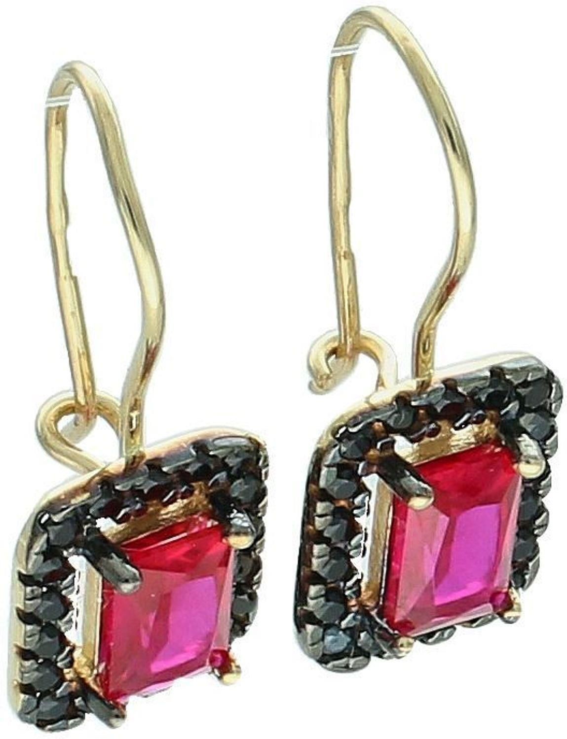 Diament Złote kolczyki damskie 585 prostokątne z różową i czarnymi cyrkoniami – 2,00g 2,0 cm bigiel Toruń