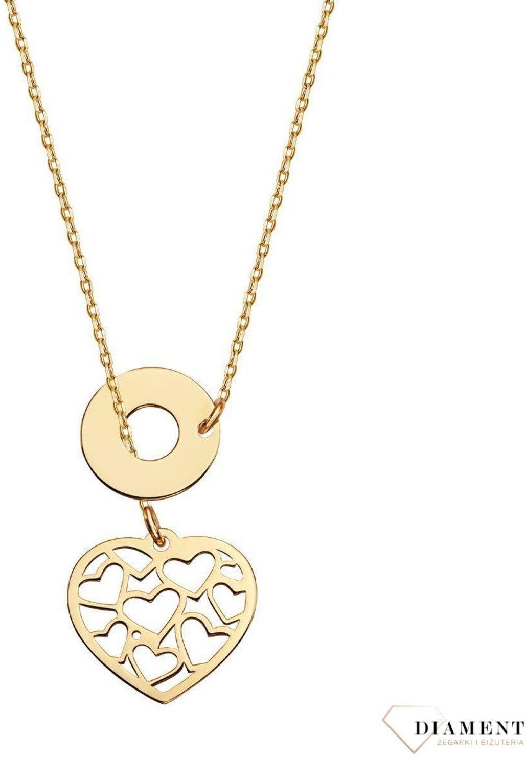 DIAMENT ZŁOTY NASZYJNIK KRAWATKA Z AŻUROWYM SERCEM Toruń