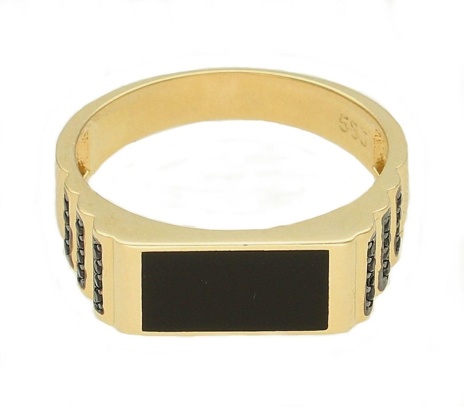 Diament Złoty sygnet męski z czarnymi cyrkoniami i prostokątną ciemną formą 585 Toruń