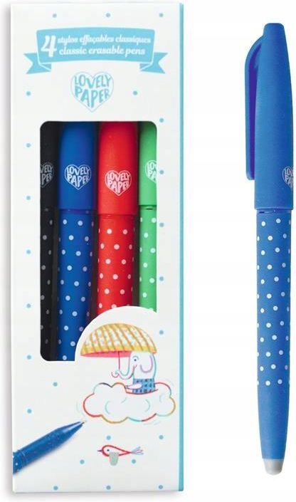Przedmiotem oferty jest: Długopisy wymazywalne 4 klasyczne kolory Djeco 6+ Producent: DJECO Długopisy wymazywalne 4 kolory klasyczne Djeco 6+ Zestaw 4 wymazywalnych długopisów w 4 klasycznych kolorach - czarnym, niebieskim, czerwonym i zielonym. Każdy długopis ma gumową końcówkę, za pomocą której można wymazać błędy w notatkach. Zestaw jest zapakowany w kartonowe pudełko z okienkiem. Długopisy ładnie piszą a gumowa końcówka dobrze wyciera niechciany tekst, pozostawiając kartkę czystą, bez widocznych śladów wycierania. OPIS Długopisy wymazywalne 4 sztuki Wiek 6+ Wymiary opakowania: 5,3 x 16,6 x 1,7 cm Francuska firma Djeco od 1954 roku tworzy oryginalne i nieprzewidywalne zabawki dla dzieci w wieku 1 - 13 lat. Projektanci nie skupiają się na strategii marketingowej - wolą spędzać czas na marzeniach, zabawie i odkrywaniu nowego. Dzięki tej swobodzie powstają zabawki o żywych kolorach, niesamowitych wzorach i pobudzających wyobraźnię. Ten twórczy zapał przekłada się na tworzenie projektów, których nie znajdziecie w żadnej innej firmie. Zabawki są spełnieniem dziecięcych marzeń i wyobrażeń, pełne szalonych kolorów, lub eleganckie - podszyte nostalgią. Produkty z firmy Djeco pobudzają wyobraźnię i sprawiają, że dzieci chcą odkrywać zabawę na nowo!