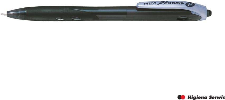 DŁUGOPIS PILOT AUTOMATYCZNY REXGRIP CZARNY Długopis z wymiennym wkładem olejowym, w awangardowej obudowie. Grubość linii pisania 0,21 mm, długość linii pisania 1100 m. Nowoczesny specjalnie zaprojektowany gumowy uchwyt zapewniający maksymalną wygodę podczas pisania, idealnie dopasowuje się do dłoni. Tusz olejowy, wodoodporny, nieblaknący, pisze po każdym rodzaju papieru. Długopis doskonale nadaje się pod nadruk. Do kompletu z ołówkiem automatycznym Rexgrip. Pasuje wkład krótki olejowy.