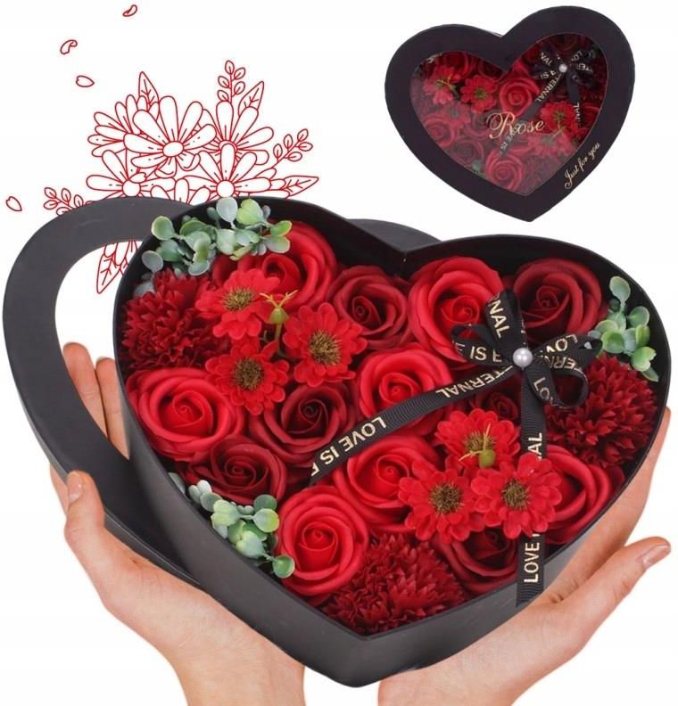 IDEALNY NA PREZENT BUKIET ZAPACHOWYCH KWIATÓW MYDLANYCH W PUDEŁKU SERCE Idealny Prezent na Każdą Okazję Szukasz subtelnego i oryginalnego prezentu, który zachwyci swoją elegancją i niepowtarzalnym aromatem? Bukiet kwiatów mydlanych to niezwykła kompozycja, która łączy piękno świeżych kwiatów z praktycznością delikatnego mydła. Starannie ułożone mydlane róże wyglądają jak prawdziwe kwiaty, a ich subtelny zapach wypełnia wnętrze przyjemną nutą relaksu. Dzień Kobiet, Walentynki, urodziny, rocznica, Dzień Matki czy ślub – bukiet mydlanych kwiatów to ponadczasowy podarunek, który wywoła uśmiech i zachwyt. Gotowy do wręczenia! Eleganckie, ozdobne pudełko ze zdobieniami i kokardą sprawia, że bukiet prezentuje się wyjątkowo ekskluzywnie. Czym wyróżnia się bukiet mydlanych kwiatów? Wyjątkowy Wygląd – Jak Prawdziwe Kwiaty! Każda róża jest precyzyjnie wykonana, aby jak najwierniej oddać naturalny wygląd kwiatów. W przeciwieństwie do żywych roślin, ten bukiet nigdy nie zwiędnie – będzie cieszył oko przez długi czas. Delikatny, Relaksujący Zapach Piękny, kwiatowy aromat sprawia, że bukiet nie tylko wygląda, ale i pachnie jak świeże kwiaty. Idealny do dekoracji wnętrz – może pełnić funkcję naturalnego odświeżacza powietrza. Praktyczność i Uniwersalność Mydlane róże mogą być używane do kąpieli – wystarczy wrzucić kilka płatków do wody, aby cieszyć się relaksującą, pachnącą kąpielą. Świetna alternatywa dla klasycznych bukietów – nie wymaga podlewania ani specjalnej pielęgnacji. Specyfikacja Techniczna Materiał: Kwiaty mydlane, opakowanie z tworzywa sztucznego Wymiary pudełka: 22 cm x 20 cm x 9 cm