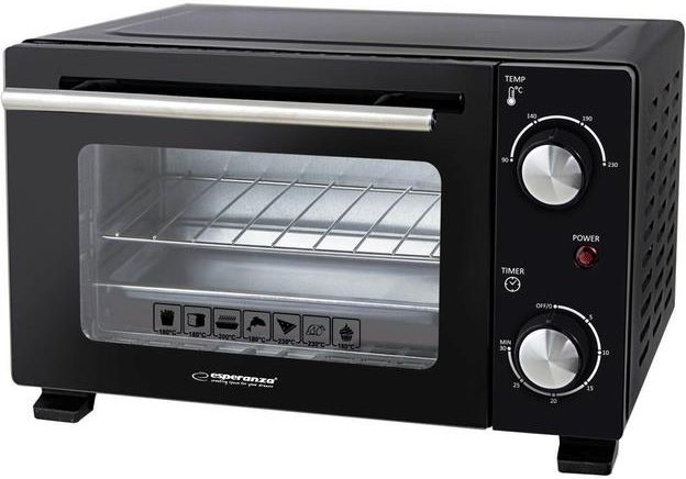 Częstotliwość wejściowa AC: 50 Hz Dołączony ruszt: Tak Długość przewodu: 0,9 m EAN: 5901299965580 Funkcja dodatkowego podgrzewania: Nie Funkcja utrzymywania temperatury: Nie Gotowanie na parze: Nie Grill: Nie Gwarancja: 24 miesięcy gwarancji Głębokość produktu: 255 mm Kod Producenta: EKO007N kolor produktu: Czarny Materiał frontów: Szkło Minutnik: Tak, 30 min Moc piekarnika: 800 W Napięcie wejściowe AC: 220 - 240 V OSTRZEŻENIA: Urządzenie nagrzewa się podczas pracy. Zachować ostrożność, aby uniknąć poparzeń., Nie pozostawiać urządzenia włączonego bez nadzoru., Nie używać urządzenia w pobliżu łatwopalnych materiałów. Pojemność netto piekarnika: 10 l Regulowany termostat: Tak Rodzaj timera: Mechaniczny Standardowe gotowanie: Tak Szerokość produktu: 356 mm Taca do pizzy: Tak Tacka na okruchy: Tak Temperatura (maks): 250 °C Typ kontroli: Obrotowy Umiejscowienie urządzenia: Wolnostojące Wbudowany wyświetlacz: Nie Wymary wewnętrzne (SxGxW): 240,8 x 205 x 183 mm Wysokość produktu: 205 mm Zawias drzwiczek: W dół