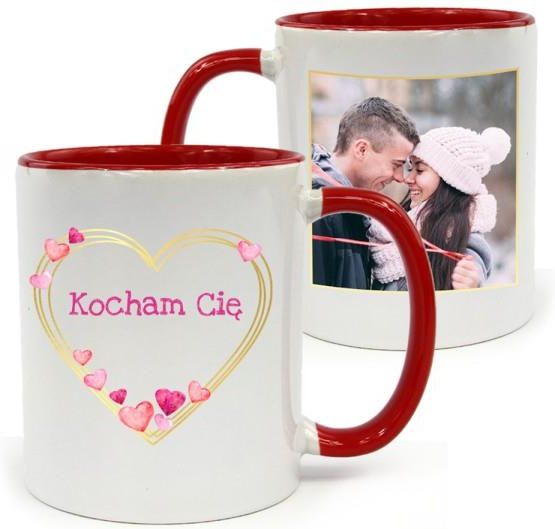 FOTO KUBEK PREZENT NA WALENTYNKI Z WŁASNYM NADRUKIEM ZDJĘCIEM LOGO czerwony Toruń