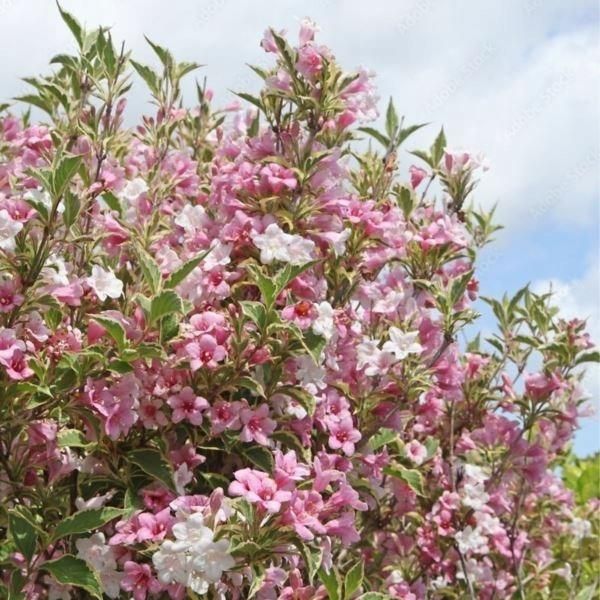 Weigela florida 'Variegata' Weigela florida 'Variegata' Szeroko rozłożysty, silnie rosnący krzew ozdobny, osiągający do 2,5 m wysokości i większą szerokość. Liście sezonowe, szarozielone z wąskim, żółtawobiałym obrzeżeniem. Kwiaty bladoróżowe, dzwonkowate, pojawiają się obficie w maju i czerwcu …
