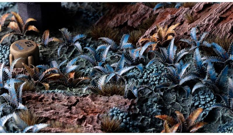 Gamers Grass Gamers Grass: Laser Plants - Alien Fern - Paproć Elementy roślin urozmaicające podstawki, figurki, makiety i dioramy Paproć kosmiczna (nazwa pochodzi od ziemskiej rośliny z rodzaju Blechnum) ma długie, pierzaste liście, podobnie jak jej ziemskie odpowiedniki. Bez kwiatów, jej brązowe lub pomarańczowe liście w wilgotnych siedliskach tworzą symbiozę z wysoce toksycznymi niebieskimi algami, stają się niebieskawe i bardzo trujące. Teraz, dzięki zestawowi Laser Plants - Alien Fern możesz dodać je do swojej makiety! Ten arkusz zawiera 38 liści paproci kosmicznej w różnych kolorach i rozmiarach do wykorzystania w modelach redukcyjnych, figurkach hobbystycznych i malowniczych dioramach.